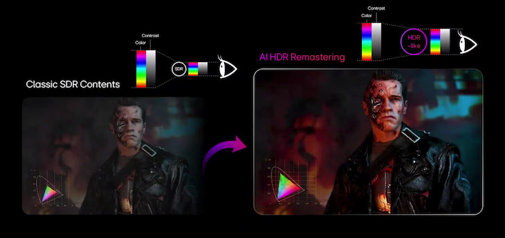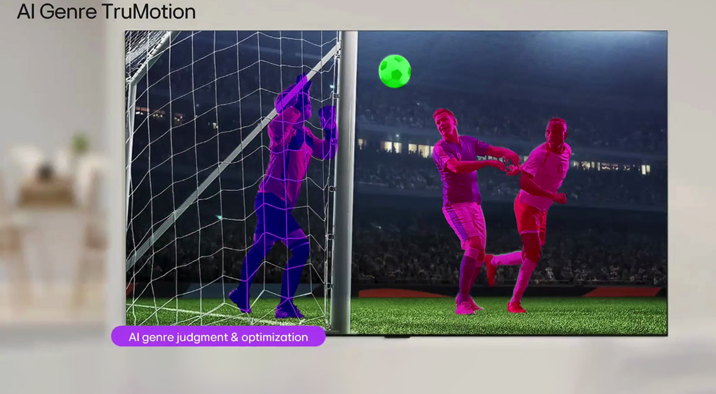 Il rinnovamento della gamma TV passa anche dall’aggiornamento dei processori video integrati. LG non si è soffermata in dettaglio su tutti i modelli, ma sappiamo che gli Alpha 8 4K AI Gen 3 affiancheranno gli Alpha 11 4K AI Gen 3, i più evoluti in assoluto. Le prestazioni sono ulteriormente migliorate: rispetto a un Alpha 9, la CPU dei nuovi Alpha 11 è il 50% più veloce, mentre la GPU arriva a un incremento del 70%. I chip integrano anche unità dedicate ai calcoli per l’intelligenza artificiale, le NPU (Neural Processing Unit), che risultano 5,6 volte più potenti rispetto a quelle presenti negli Alpha 9. I processori Alpha 11 Gen 3 equipaggiano quasi tutti gli OLED e alcuni dei nuovi Micro RGB, ottimizzando suoni e immagini tramite i seguenti interventi: Super AI UpscalingAumenta la risoluzione dei contenuti SD e HD fino al 4K, applicando elaborazioni differenziate in base al genere e alle scene. Sugli OLED W6, G6, C6H e sui Micro RGB MRGB95B e MRGB9M viene applicato il Dual Super Upscaling, con un doppio modello di intelligenza artificiale. AI HDR RemasteringEspande la gamma dinamica e i colori dei contenuti SDR, approssimando l’effetto di una versione HDR nativa. LG ha spiegato che, secondo varie ricerche, la maggior parte delle persone utilizza ancora sorgenti SDR, ad esempio con i piani standard dei servizi di streaming. La funzione nasce quindi per sfruttare le potenzialità dei pannelli anche con segnali in gamma dinamica standard. AI Sound ProElabora il suono per creare un effetto più avvolgente, ricreando fino a 11.1.2 canali surround virtuali. A questa funzione si aggiunge AI Object Remastering Ultra, che identifica voci, musica, effetti e bassi all’interno delle tracce audio, applicando un bilanciamento dedicato anche in funzione dell’ambiente. Il nuovo Alpha 11 è basato su un chipset completamente diverso rispetto alle generazioni precedenti. I processori montati nel 2024 e 2025 erano O24 e O24N, due varianti dello stesso componente; la terza generazione passa invece a O26 e introduce l’elaborazione a 12 bit contro i 10 bit dei predecessori. Si tratta di un cambiamento rilevante, che potrebbe contribuire a risolvere alcuni piccoli difetti nelle sfumature di colore rilevati sul G5 (qui la nostra recensione). Sugli Alpha 8 4K AI Gen 3 migliora invece la gestione delle immagini in movimento, affidata alla funzione AI Genre TrueMotion. L’intelligenza artificiale analizza le immagini in tempo reale per identificare il tipo di contenuto da ottimizzare. Nei film si procede a compensare la bassa fluidità senza snaturarla, mentre con telegiornali e programmi televisivi la fluidità viene adattata alla frequenza di aggiornamento dell’emittente, evitando scatti indesiderati. In pratica non vengono più forzati i 60 Hz in ogni situazione: un aspetto particolarmente rilevante per l’Italia, dove le trasmissioni TV sono a 50 Hz. Da segnalare infine che molte serie 2026 sono compatibili con Dolby Atmos FlexConnect e con la modalità Filmmaker con Ambient Light Compensation., che garantisce una visione fedele all’intento artistico anche in presenza di luce ambientale.