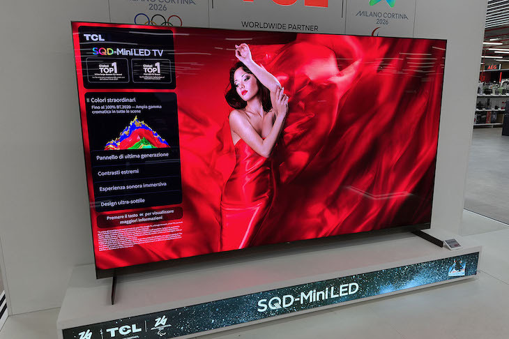 TCLTCL ha la line-up più ampia insieme Hisense e Samsung: sono sette i modelli a catalogo, quattro dei quali disponibili in tripla variante ma con le stesse specifiche (cambia solo la distribuzione). Le tecnologie includono i nuovi SQD-Mini LED, i QD-Mini LED e i più semplici QLED X11L da 98 polliciLa nuova ammiraglia TCL, che abbiamo già provato in esclusiva, è la prima a sfoggiare la tecnologia SQD-Mini LED. Abbiamo spiegato tutte le novità in questo approfondimento. Il 98 pollici è un LCD con Mini LED, Super Quantum Dot e una frequenza di aggiornamento a 144 Hz. Il local dimming è particolarmente sofisticato: dispone di 20.736 zone di controllo. X11L supporta HDR10, HLG, HDR10+, Dolby Vision IQ e in futuro anche Dolby Vision 2 Max (tramite aggiornamenti). Sfoggia un impianto audio Bang & Olufsen e, grazie al SoC Pentonic 800, mette a disposizione quattro ingressi HDMI 2.1. Le funzionalità “smart” si appoggiano a Google TV.