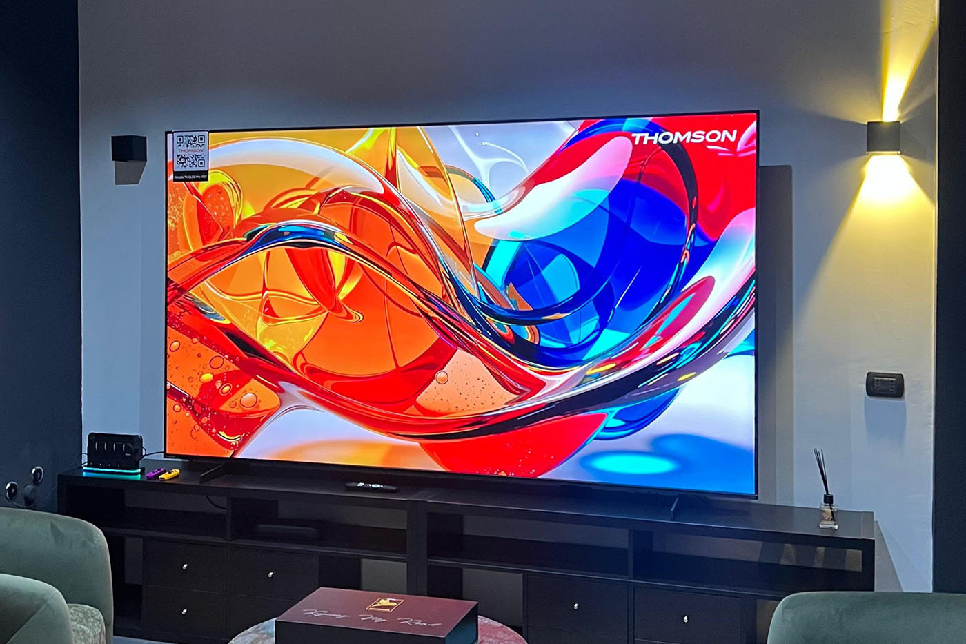 ThomsonLo storico marchio francese è stato rilanciato da qualche anno grazie a StreamView, che ha acquisito il marchio in licenza (già rinnovata fino al 2040). Nella vasta gamma TV c’è spazio anche per il modello 100QG7S14 da 100”. QLED Pro da 100 polliciIl modello più grande della serie QLED Pro è dotato di un pannello LCD VA Ultra HD con retroilluminazione Direct LED. Sono ovviamente presenti anche i Quantum Dot. La frequenza di aggiornamento arriva fino a 144 Hz. Sono supportati HDR10, HLG, Dolby Vision e Dolby Atmos. Il pacchetto confezionato da Thomson include infine Google TV, due ingressi HDMI 2.1 e due HDMI 2.0.