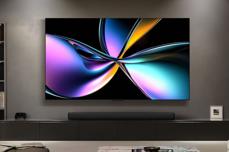HisenseHisense ha in gamma ben sette prodotti di taglio extra-large: sono un 98 pollici e sei 100 pollici. La tecnologia varia a seconda del modello: si parte da QLED senza local dimming e si sale fino ai Mini LED RGB. E7Q 98 da polliciE7Q è il prodotto di fascia più bassa: è un QLED, un LCD con Quantum Dot e retroilluminazione Direct LED, senza local dimming. Il pannello è ADS, una variante degli IPS. Il refresh rate arriva fino a 144 Hz. Sono supportati HDR10, HDR10+ Adaptive, HLG, Dolby Vision IQ, Dolby Atmos e DTS:X. A differenza dei modelli più piccoli, il 98 pollici è dotato di un sistema a 2.1 canali con subwoofer integrato. Completano la dotazione la Smart TV VIDAA U e i due ingressi HDMI 2.1 (quattro in totale) con Auto Low Latency Mode, Variable Refresh Rate, FreeSync ed eARC.