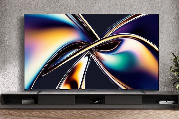 U7Q da 100 polliciCon U7Q si sale di livello, passando dai QLED agli ULED, gli LCD con Mini LED, Quantum Dot e una retroilluminazione Full LED Array con local dimming. Il 100 pollici è un LCD VA a 165 Hz con 608 zone di controllo indipendenti. Sale anche il picco di luminanza, che arriva a 1.000 nit. U7Q è tra i pochi prodotti equipaggiati con il SoC Pentonic 800, che oltre a gestire la Smart TV VIDAA U, porta in dote quattro ingressi HDMI 2.1. Il comparto audio utilizza 2.1 canali, come i modelli di fascia più bassa.