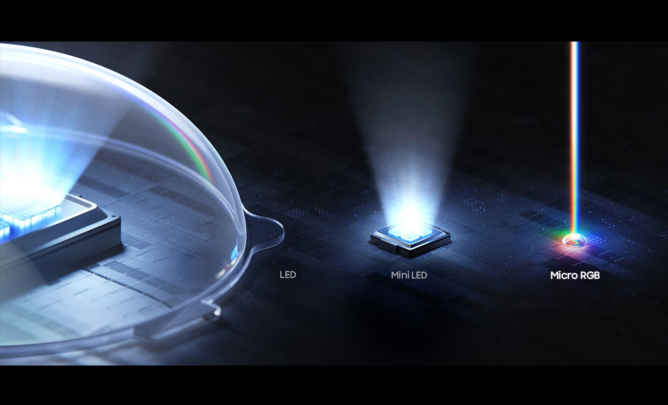 R95F da 115 polliciIl primo TV Micro RGB Samsung è un 115 pollici dotato di Micro LED RGB, che sostituiscono i Mini LED blu con Quantum Dot. Ne abbiamo parlato più in dettaglio in questa anteprima. Il pannello è sempre un LCD di tipo VA che arriva a 144 Hz. Il local dimming conta circa 15.000 zone colore, cioè il controllo che tiene in considerazione la possibilità di pilotare separatamente le componenti rossa, verde e blu (i colori). Il local dimming convenzionale, che gestisce la luce emessa dal pannello, ha 1/3 delle zone, quindi circa 5.000. La dotazione include il processore Micro RGB AI Engine, un impianto audio a 4.2.2 canali, la Smart TV Tizen e quattro ingressi HDMI 2.1.