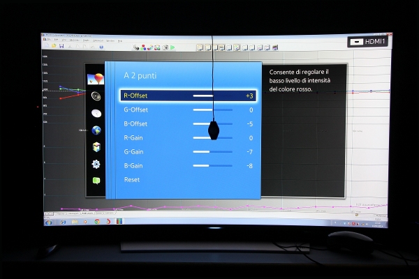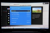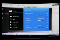 Per la calibrazione, sono partito dalla modalità predefinita "film", impostando prima di tutto la riproduzione dei colori primari all'interno del triangolo di gamut di riferimento dell'alta definizione. Il display non è in grado di spingersi molto oltre, quindi gli spazi colore più estesi come Adobe, DCI o REC.2020 non possono essere riprodotti neanche con calibrazione ad hoc. Dopo la selezione dello spazio colore predefinito più vicino al REC.709 ho provveduto alla calibrazione del bilanciamento del bianco su due punti (alte luci e basse luci, esattamente in questo ordine), raggiungendo risultati così buoni da non procedere oltre, ovvero con scala dei grigi a passi del 10%. Il risultato è davvero molto buono e l'errore massimo sulla scala dei grigi, secondo la scala Delta E uv con pesatura della luminanza e del gamma, è inferiore a 6 ed è relativo soltanto al gradino al 10% di intensità del segnale in ingresso, situazione migliorabile con la calibrazione di quel singolo gradino e che, per lo scarso tempo a disposizione, ho dovuto rimandare. In queste condizioni i valori del gamma sono ottimi e compresi tra 2,2 e 2,3 per buona parte della scala dei grigi (dal 45% al 95%) e scende molto dolcemente, arrivando al valore di 2,00 soltanto al 15% di intensità del segnale in ingresso. Il primo step al 5% vale già 1,7 ed è sinonimo di una buona sensazione di tridimensionalità e riproduzione dei livelli delle sfumature molto precisa. La riproduzione dei colori è la cosa che mi ha entusiasmato di più. Anche in questo caso gli strumenti a disposizione per la calibrazione sono tanti e molto potenti: con un po' di pazienza è possibile calibrare tinta, saturazione e luminanza dei colori primari e secondari, con ottimi risultati. Limitando la calibrazione al bilanciamento del bianco, i valori sono già molto buoni, con un Delta E uv che diventa ancora più contenuto rispetto alle impostazioni film e che cede qualcosa solo negli step di saturazione intermedi del giallo e del verde e parzialmente anche per il magenta e dove c'è una leggera tendenza soltanto alla sovra-saturazione. Il Delta E uv medio dei colori test della carta Gretag è inferiore a 2. In poche parole, il quadro generale è molto buono e ulteriormente migliorabile, a patto di investire un po' di tempo nelle combinazioni di calibrazione sia nel controllo colore che nel bilanciamento del bianco su 10 punti, facendo molta attenzione a non pregiudicare una riproduzione delle sfumature che sembra già molto buona. Pagina 5 - Conclusioni preliminari