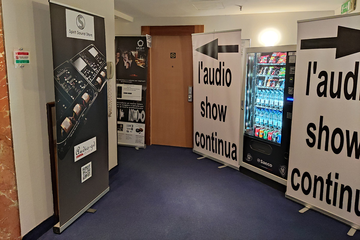 In una sala attigua c’era una postazione di ascolto interessante, consistente in una cabina trattata acusticamente in modo da attenuare grandemente le interferenze derivanti da possibili rumori esterni in grado di compromettere la qualità dell’ascolto. Dentro si poteva ascoltare la superstar delle cuffie presenti all’Hi-Fidelity romano, il sistema Valkyria, recentemente presentato in anteprima a Roma da VDM Group di Igor Fiorini.