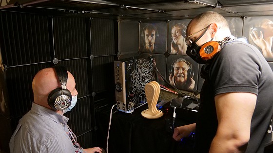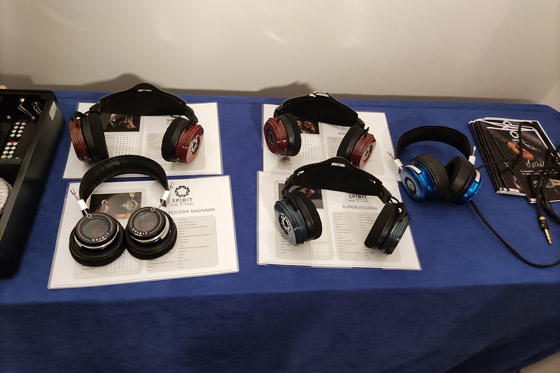 Tutti i prodotti appaiono solidi, i materiali impiegati sono decisamente pregiati e i vari modelli traboccano di personalità estetica che sprizza da ogni singola vite e cavo: tutto questo mostra una estrema cura posta in fase progettuale e nella scelta della componentistica. Trovare il boot di Spirit al Roma Hi-Fidelity non è stato affatto difficile. Non ho nemmeno dovuto studiare la mappa della mostra: frotte di giovani visitatori si fiondavano in un’unica room, la 133, che, manco a dirlo, era la 'casa' di Spirit. Al suo interno ragazzi gentili e tecnicamente preparati erano pronti ad accogliere gli audiofili invitandoli all’ascolto di vari set disposti su un un ampio tavolo ad elle su cui era disposto ogni ben di Dio, ovvero la gamma completa di cuffie tra cui la aperta Superleggera (1.600 Euro), peraltro disponibile anche in versione top, che per tutti i modelli assume come suffisso il nome dal Re vichingo Ragnarr (1.950 Euro), con potenziamento al neodimio del drive che in questo caso assicura 3,8 kg di spinta magnetica aggiuntiva e adotta il cablaggio della Twin Pulse, senza produrre uno spostamento tonale, bensì una maggiore emissione pari a 3 dB.