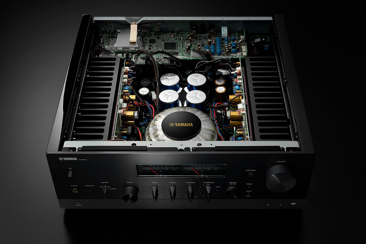 CARATTERISTICHE E COSTRUZIONE La serie R-N di Yamaha si compone di quattro modelli: R-N600, R-N800, R-N1000 e il modello R-N2000 che ho ascoltato e analizzato a fondo e che è l'oggetto di questo articolo. Le differenze tra i quattro modelli sono riconducibili alla potenza erogata, alla presenza di alcune funzioni e ingressi, al DSP per la calibrazione audio, alla qualità costruttiva del telaio oltre alla qualità di alcuni componenti, come DAC, trasformatori e finali di potenza. Il design di R-N2000A è palesemente derivato da quello utilizzato per gli amplificatori stereo di fascia più alta della casa dei tre diapason, ovvero della serie A-S: sul frontale troviamo i Vu Meter, i controlli per il volume, alti, bassi, bilanciamento e loudness oltre alla manopola per selezionare la sorgente. Quest’ultima si può anche schiacciare per dare conferma all’interno di alcuni menu. Rispetto agli amplificatori stereo Yamaha c’è un elemento consente di distinguere a colpo d’occhio R-N2000A: in basso c’è una striscia nera lucida che richiama i due fianchi. C’è però una differenza: i fianchi sono in vero legno laccato mentre la parte in basso è semplicemente plastica lucida. Questo elemento resta inalterato qualunque sia la finitura scelta ed è quindi presente non solo sul modello nero ma anche su quello color argento. La striscia nera non ha una funzione meramente estetica: serve infatti a integrare un display OLED monocromatico che riporta informazioni di vario tipo, come il livello del volume, la sorgente in uso o il nome del servizio streaming che l’utente sta utilizzando. Il livello costruttivo è in linea con gli amplificatori Yamaha e quindi elevato. L’interno è caratterizzato da una struttura simmetrica: al centro c’è la sezione di alimentazione con il generoso trasformatore toroidale realizzato da Bando, affiancato da quattro condensatori elettrolitici da 18.000 microfarad. Ai lati abbiamo invece i blocchi dedicati ai finali, ciascuno dei quali è provvisto di un generoso dissipatore in alluminio che occupa quasi tutto lo spazio disponibile in profondità. Verso il lato posteriore sono invece collocate la sezione di pre-amplificazione e le schede che gestiscono tutti gli ingressi e i connettori. Tutto il telaio e i componenti interni sono inoltre progettati per garantire la massima rigidità strutturale ed eliminare (o ridurre al minimo possibile) le vibrazioni indesiderate. Il raggiungimento di questo obiettivo passa per vari accorgimenti: all’interno sono presenti vari elementi in lamiera posti sia in verticale sia in orizzontale. Ci sono poi i piedini in ottone placcato in argento, fissati al fondo tramite bulloni saldati direttamente sul telaio principale. Anche i dissipatori, i condensatori e il trasformatore (che ha una base in ottone da 3 millimetri) sono fissati alla struttura portante del telaio tramite bulloni. Quanto ho appena descritto va a realizzare quello che viene definito dal costruttore “concetto di isolamento meccanico”. Tornando ai finali, il circuito degli stadi di uscita è flottante ed è completamente indipendente dal collegamento a terra. La topologia nella fase di uscita è “pull-pull” e quindi simmetrica. N2000A eroga 90 W per canale su 8 ohm (20 Hz - 20 kHz, 0,07% THD) o 145 W per canale su 4 ohm in Classe AB. La conversione da digitale ad analogico è affidata a un DAC ESS ES9026PRO mentre ad occuparsi dell’opposto, cioè da analogico a digitale, è un chip Burr Brown PCM4202. C’è poi un DSP che ha il compito di elaborare tutte le tipologie di segnale. Dalla rete locale lo Yamaha N2000A può leggere file audio con codifica MP3, WMA, MPEG-4 AAC, WAV, FLAC, AIFF e DSD fino a 11,2 MHz. Tramite gli ingressi digitali si arriva a frequenze di campionamento fino a 192 kHz / 24-bit che salgono fino a 384 kHz / 32-bit usando la porta USB-B, che praticamente trasforma lo Yamaha in un DAC USB. Il resto della connettività include un ingresso phono MM (Moving Magnet), l’uscita per un subwoofer e le pre-out stereo, 2 ingressi digitali ottici e un coassiale, Bluetooth, Wi-Fi, Ethernet, l’antenna radio DAB/FM e una HDMI con ARC. N2000A non è quindi un prodotto votato unicamente all’ascolto di musica ma può anche diventare un centro di intrattenimento a tutto tondo, includendo anche l’audio proveniente da un TV. Tutte le funzioni si possono controllare tramite l’app MusicCast, che svolge un ruolo assolutamente centrale sia nel facilitare l’uso del prodotto sia nel gestire impianti multi-room creati aggiungendo altri prodotti compatibili con l’ecosistema Yamaha. L’applicazione pesca la musica eventualmente presente sulla propria libreria locale (un NAS per esempio), può accedere alle internet radio e ai servizi streaming di Spotify, Amazon Music HD, Tidal, Deezer e Qobuz. Per gli utenti Apple c’è anche AirPlay 2 che apre le porte all’ascolto su Apple Music. Completa la dotazione il sistema di calibrazione acustica YPAO (Yamaha Parametric room Acoustic Optimizer), qui in versione con R.S.C. (Reflected Sound Control) quindi con misurazione anche delle riflessioni. Usando il microfono incluso nella confezione si effettua una serie di misurazioni che servono a correggere, nei limiti del possibile, l'acustica dell'ambiente. R-N2000A è disponibile in nero o argento al prezzo di 3.499 euro, con possibilità di estendere la garanzia da 2 a 5 anni registrando il prodotto sul sito Yamaha.