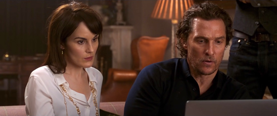 L’articolo che state per leggere contiene sesso, droga, violenza, arroganza, spocchia, volgarità, Madonna e qualsiasi altra cosa la fetida mente di chi scrive abbia fermentato dopo la visione di questo film. Il suo linguaggio è fatto apposta per turbare benpensanti, moralizzatori, politicamente correttissimi, ladies, gentlemen ed altre categorie assimilabili. A tutti gli altri, buon divertimento. Mickey Pearson, boss della cannabis, è intenzionato a vendere la sua attività consistente in diversi laboratori nascosti al miliardario americano Matthew Berger per 400 milioni di sterline, al fine di ritirarsi a vita privata con la moglie Rosalind e godersi i frutti del suo lavoro. Il suo braccio destro Raymond Smith riceve la visita inaspettata dell’investigatore privato Fletcher che ha una storia su Mickey - riportata su un dossier scritto a mo’ di sceneggiatura - che ha intenzione di cedere per 20 milioni di sterline minacciando in alternativa la pubblicazione su un noto tabloid scandalistico inglese. Intanto anche Occhio Secco, vice del gangster cinese Lord George, propone di rilevare l’attività di Mickey ma lui rifiuta. Un gruppo di ragazzi dediti alle arti marziali fa irruzione in un laboratorio portando via diverse piante, ma quando Coach, il loro allenatore, lo scopre corre a scusarsi proponendo di eseguire alcuni servizi per Mickey oltre alla riconsegna della marijuana. Le cose si complicano sempre di più e sarà difficile capire quali siano le verità in mezzo a una serie di manipolazioni messe in atto per rovesciare il potere di Mickey che non sa di chi possa davvero fidarsi. Per essere il re della giungla non basta comportarsi da re. Devi essere il re. E non devono esserci dubbi, perché i dubbi creano caos e ti portano alla rovina. Lock & stock, Snatch, RocknRolla, Sherlock Holmes, Sherlock Holmes - Gioco di ombre, Operazione U.N.C.L.E. e il prossimo Wrath of Man. Nel miglior cinema di Guy Ritchie raramente si trovano personaggi buoni(sti) per cui fare un tifo incondizionato, ci sono delinquenti, balordi, drogati e infami, alcuni dei quali, nonostante tutto, diventano simpatici perché in qualche modo seguono regole non scritte di dignità, valore, rispetto e onore misti a etica professionale. Anche quando la professione non è poi così onorevole (anche nel suo live action di Aladdin il protagonista è un ladro, sebbene in salsa disneyana). Il regista dimostra la solita dimestichezza nel maneggiare il genere gangster anche stavolta. Nel suo curriculum esiste un’unica sbavatura o, per meglio dire, un errore grosso come una casa: Travolti dal destino, remake di Travolti da un insolito destino nell’azzurro mare d’agosto di Lina Wertmüller (già la differenza fra i titoli suggerisce qualcosa), con l’allora moglie Madonna che dopo Evita pensò (male) di potersi misurare con un’icona come Mariangela Melato. Errore. Grosso. Come una casa. A lui lo perdoniamo. E anche a lei visto che dopo quel flop decise che non avrebbe più recitato come protagonista in nessun film e finora sta tenendo fede al patto continuando invece a fare ciò per cui è nata: cantare (bene) e a tempo perso attaccare personaggi come Donald Trump. Il cinema di Ritchie è sporco, brutto (anche se qui ci sono non pochi belli) e cattivo, sempre in linea con l’idea che non esistono santi, esistono solo esseri che pur di sopravvivere e/o dominare sarebbero in grado di fare praticamente qualsiasi cosa. Animali insomma. - Ciao amore... - Ciao amore. Il Mickey di Matthew McConaughey - al suo primo film con Ritchie - è scaltro, elegante, sprezzante. Ha iniziato a fare i soldi vendendo erba ai colleghi studenti al college abbandonando poi gli studi per creare un business milionario. È determinato nel voler abbandonare l’attività non perché ritiene di essersi rammollito con gli anni, bensì perché capisce, da bravo imprenditore, quand’è il momento di farsi da parte. Rosalind (Michelle Dockery | Downton Abbey), la moglie di Mickey, è una donna manager risoluta, tosta, un maschiaccio direbbe qualcuno, una femmina nel senso più alto direbbe qualcun altro. Quando si dice che (dietro, ma in questo caso è preferibile) di fianco a un grande uomo c’è una grande donna si intende una donna come lei. È forte e sensuale al pari - se non oltre - della Naomi/Margot Robbie, moglie di Jordan Belfort/Leonardo DiCaprio di The Wolf of Wall Street: ricordate la scena in cui lei (la Robbie), seduta per terra con lui di fronte, gli mostra tutta la sua femminilità e, quando lui cade a terra - a quattro zampe, adorante, a bocca spalancata - e va verso di lei, lei lo tiene a bada con la suola della scarpa sulla di lui fronte? Sì che la ricordate. Bene Rosalind supera quel concetto, andate a vedere come, se non l’avete già fatto. Digressione: tra l’altro, in TWoWS c’era anche McConaughey che interpretava il broker esaltato che invitava DiCaprio a mugugnare un motivetto battendosi il petto col pugno. Chiusa digressione. Vedi: il problema non è il primo pezzo di domino che cade, Michael. Il problema è l’ultimo. Perché bisogna guardare The Gentlemen? Perché riesce a mescolare con meticolosità azione, commedia e thriller - generi che difficilmente si impastano così bene - con la naturalezza che solo Guy Ritchie - e pochi altri - riesce a far sembrare tanto semplice, un po’ come quando si guarda un esercizio ginnico eseguito da Jury Chechi. Intanto è in pre-produzione una serie basata su The Gentlemen che porta lo stesso titolo, scritta e diretta da Ritchie. Non ci sono ancora notizie sul cast, sulla trama o su una data di uscita. Il 15 gennaio 2021 dovrebbe poi uscire - complicazioni da COVID-19 permettendo - il film Wrath of Man che vede il regista al suo quarto film con l’attore Jason Statham dopo Lock & stock (1998), Snatch (2000) e Revolver (2005). Attendiamo con fiducia e ardore. Nota tecnica a cura di Emidio Frattaroli VALUTAZIONI regia 8 sceneggiatura 7 recitazione 8.5 fotografia 8 musi