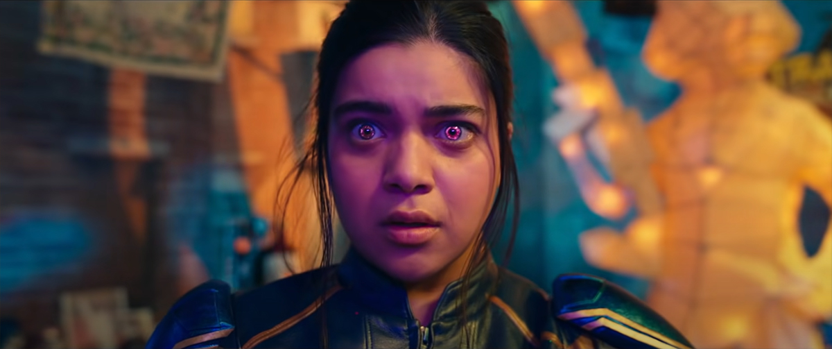 La sedicenne Kamala vive con la testa tra le nuvole per sfuggire a una realtà che le sta stretta. Fan degli Avengers, in particolare di Carol Danvers alias Captain Marvel che per lei è un vero e proprio punto di riferimento, fa di tutto per partecipare con l’amico Bruno all’evento AvengerCon nonostante la contrarietà dei genitori a mandarla sola. Il costume da cosplayer che sceglie di indossare viene completato da un oggetto trovato in un pacco inviato dalla nonna materna, un bracciale appartenuto alla sua bisnonna Aisha. Una volta alla convention il bracciale rivela doti magiche che la rendono all’improvviso una vera supereroina. Sulle sue tracce si mettono così il Damage Control, un dipartimento che si occupa di reprimere esseri dotati di superpoteri fuori controllo, e il gruppo dei Clandestini formato da djinn esiliati dalla loro dimensione. Sesta serie live action della Fase Quattro del Marvel Cinematic Universe (dopo WandaVision, The Falcon and the Winter Soldier, Loki, Hawkeye e Moon Knight, e prima di She-Hulk: Attorney at Law in uscita il 18 agosto), Ms. Marvel si presenta inizialmente con un cinematico stile grafico che ricorda quello di Scott Pilgrim vs. the World e di I Mitchell contro le macchine, in una baraonda di disegni che si animano live e che rappresentano il vortice di pensieri della protagonista, mente brillante, amica preziosa e figlia in crescita. La serie racconta di un’adolescente svampita le cui fantasie diventano realtà. Fin quando Kamala mette in moto la sua creatività per estraniarsi da ciò che è canonico, banale e pesante la sua vita è leggera e spensierata. Ma dal momento in cui la sua immaginazione viene messa da parte e deve confrontarsi con il dover apprendere ciò che deriva dai suoi poteri compresa una gigantesca responsabilità, le cose si fanno incandescenti e scomode. Ma il suo spirito un po’ discolo e super positivo la mantengono sui binari del “ce la posso fare, ce la DEVO fare”. Una scena dopo la scoperta dei super poteri ricorda fortemente quella del primo Spider-Man di Sam Raimi in cui il ragazzo prova a lanciare le ragnatele per la prima volta, entrambe evocative e divertenti perché mettono in risalto l’iniziale difficoltà dei due protagonisti nell’approccio con le nuove capacità ma anche in parallelo con l’affollamento di ormoni che abitano i loro corpi. Uno dei principali punti di forza di Ms. Marvel è la caratterizzazione dei diversi personaggi, ben scritti e poco soggetti alla banalità del dover essere buoni o cattivi. Sono le loro sfumature ad arricchire un prodotto che parte come intrattenimento per rivelare poi anche altro. Il primo macrosoggetto è la famiglia, di origini pakistane, con il suo essere al contempo radice e rifugio ma anche limite e controllo. La madre di Kamala teme per la sicurezza della figlia ma è anche una fan di Bon Jovi fin da giovane, quando era a sua volta una piccola ribelle. Il padre segue (e fa seguire) i dettami religiosi ma ama anche la tecnologia. Suo fratello sta per sposarsi e ottiene per questo una grande attenzione da parte di tutti. Ma questo non lede Kamala perché i due anche se diversi sono legati e complici. Un nucleo straniero in un paese il cui sogno può avverarsi per chiunque, sebbene tra mille contraddizioni. Il modo in cui la storia di fantasia si incastona con la reale storia pakistana è l’ennesima conferma di quanto la Marvel si impegni a creare un universo, sì alternativo, ma sempre sensato, includente e culturalmente vivo. Fuggiti dal Pakistan durante la cosiddetta Partizione del 1947, i bisnonni di Kamala non hanno soltanto compiuto un viaggio verso la propria salvezza ma anche per quella di chi sarebbe venuto dopo. E il racconto di quel passato si sviluppa in maniera tutt’altro che leziosa, al contrario, ogni passaggio diventa avvincente facendo passare in secondo piano ogni effetto speciale e superpotere. La cultura di un popolo non è vissuta come barriera ma come una profonda ricchezza da cui attinge per prima Kamala che porta nel nome la Luce (come la città di Karachi viene descritta in un cartellone pubblicitario come “città della luce” e il primo nome da supereroina della protagonista sarà Night Light). Beta, ammi, abbu, nani, sono parole urdu (che correttamente non vengono tradotte) facilmente assimilabili a elementi familiari comuni a tutti e per questo comprensibili e condivisibili. Ciò che cerchi cerca te. – Come posso essere normale? VALUTAZIONI dal trailer all’intera serie soglia d’attenzione visione Ms. Marvel | miniserie ideatore Bisha K. Ali sceneggiatura Freddy Syborn personaggi interpreti critica IMDb serie intera 6,2 /10 singoli episodi 6,9 /10 | Rotten Tomatoes critica 8,2 /10 utenti 4,2 /5 | Metacritic critica 78 /100 utenti 4,1 /10 |