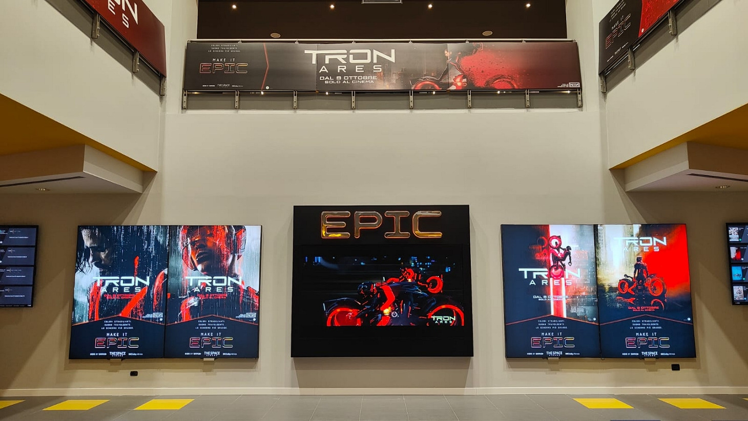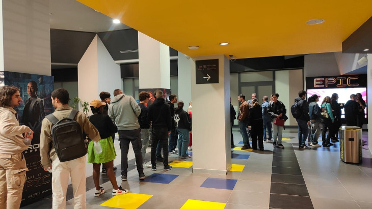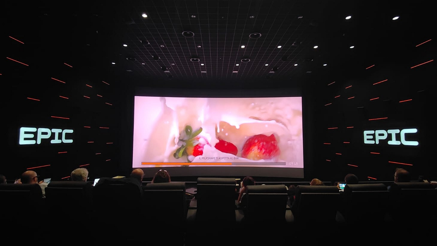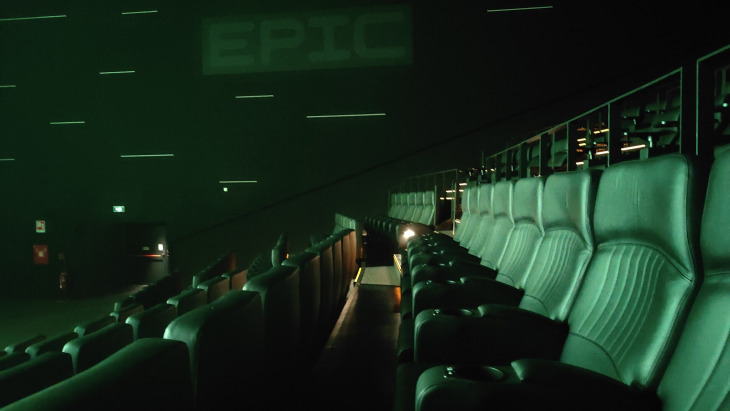 Il percorso dal parcheggio all’ingresso del cinema è abbastanza “spoglio” e un po’ “casuale”, con solo qualche freccia sparuta di indicazioni sembra tutto abbastanza “anonimo”, anche se abbastanza in ordine, d’altra parte nulla batterà i tunnel luridi e degradati che conducono al leggendario BFI di Londra e alla sua sala IMAX 70mm! Una volta arrivati all’interno del cinema si rimane un po’ spiazzati dalle scritte EPIC: Sono letteralmente ovunque, tanto da rendere paradossalmente complicato capire dove andare per accedere alla sala, infatti finisco al primo piano, dove gli addetti mi dicono che devo tornare al piano terra e intanto il tempo scorre…