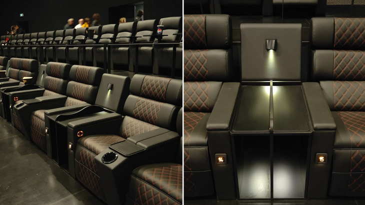 Lo schermo, probabilmente da circa 22 metri di base, è leggermente curvo per contenere l'effetto spot di chi è seduto in posizione centrale. La sala è piuttosto grande rispetto ai 268 posti complessivi, con gradinata mediamente ripida, poltrone grandi e comode divise in tre gruppi, con quelle più economiche basculanti e quelle più costose motorizzate e che si trasformano quasi in un letto.