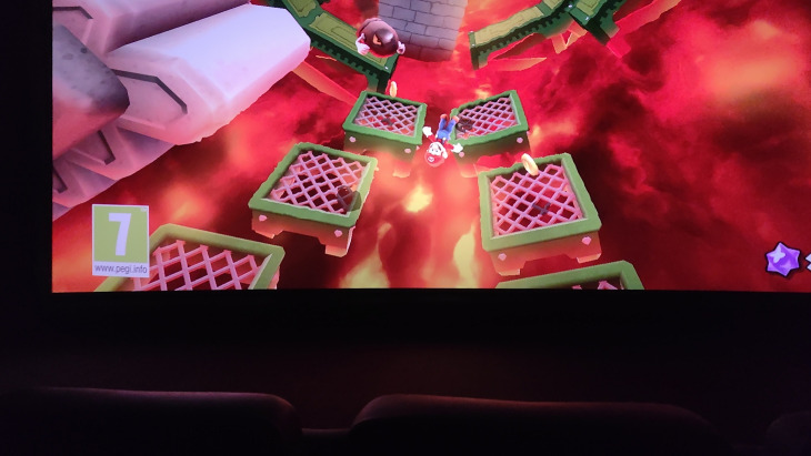 Tutto perfetto quindi? Non proprio. Su dettaglio e risoluzione non ci siamo. Il problema è nella convergenza tra i due proiettori che non è perfetta. Solo nella porzione centrale dello schermo c'è una buona sovrapposizione delle due immagini. Nel quadrante in basso a sinistra invece la situazione è drammatica e si arriva vicino all'angolo anche ad una misconvergenza di qualche pixel, sia in orizzontale che in verticale. La convergenza è imprecisa e deve essere sistemata. Per quanto riguarda l'audio, la mia esperienza con Super Mario Galaxy è stata peggiore rispetto a Tron: Ares. Il volume era sensibilmente più basso e il canale centrale ancora più indietro rispetto alla proiezione con Tron: Ares. Canali surround poco presenti e surround back non pervenuti fino alla fila 4. Anche dalla fila 5 risultano sotto-tono e iniziano ad essere presenti solo nelle ultime due file.