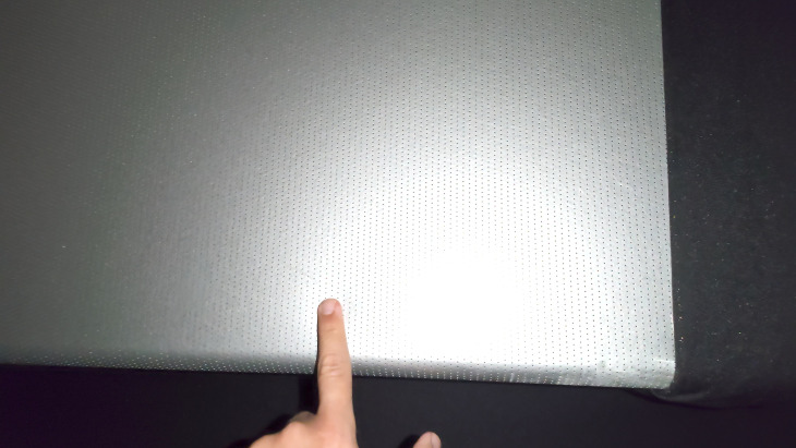 Finalmente due proiettori in funzione e livello di luminanza piuttosto elevato. Dalle file più alte, quelle in cui si è quasi in asse rispetto al centro dello schermo, probabilmente il picco di luminanza raggiunge davvero i 300 NIT. Anche l'uniformità è ottima e rimanendo in posizione centrale non ci sono cadute di luce apprezzabili. Dalle file più avanti invece, il livello di luminanza complessivo sembra diminuire, mentre aumenta un po' di vignettatura nella parte alta dello schermo. Nulla di grave ma vi consiglio di non andare più avanti della quinta fila. Dinamica e rapporto di contrasto sono sensibilmente elevati mentre bilanciamento e colori sembrano davvero ottimi. Anche lo speckling sembra ben contenuto.
