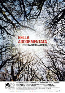 In concorso alla Mostra del Cinema di Venezia, con un forte successo di pubblico e critica ottenuto alla recente proiezione, il delicato Bella addormentata di Marco Bellocchio sbarca nelle sale italiane. Sullo sfondo la nota vicenda di Eluana Englaro, morta il 9 febbraio 2009 a causa del'interruzione dei supporti per lei vitali dopo 17 anni di coma vegetativo. Il film narra le storie di diversi personaggi che, per vari motivi, si legano alla vita (e alla morte) di Eluana. C'è il senatore diviso tra la direttiva di partito e la sua coscienza, ci sono le proteste della figlia Maria nei pressi della clinica in difesa della vita di Eluana e ci sono le motiviazioni positive o negative verso il distacco delle macchine di un'attrice credente e di una disperata malata. Bellocchio torna dietro la macchina da presa due anni dopo Sorelle mai, con un cast interessante che comprende tra gli altri Toni Servillo, Alba Rohrwacher, Maya Sansa e Isabelle Huppert. Distribuzione in sala curata da 01 distribution.