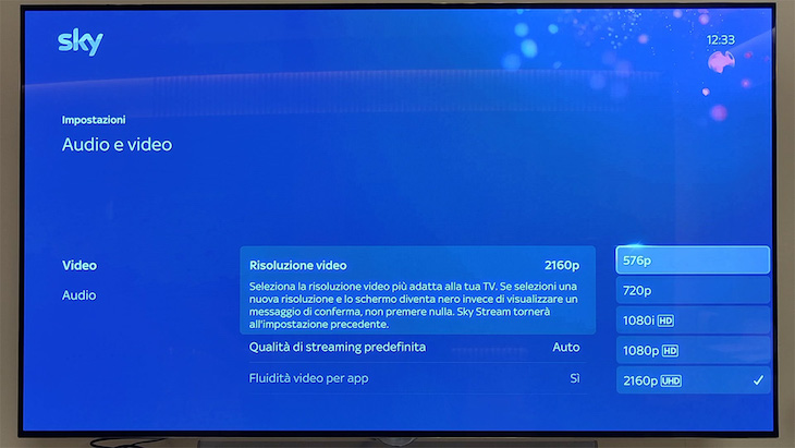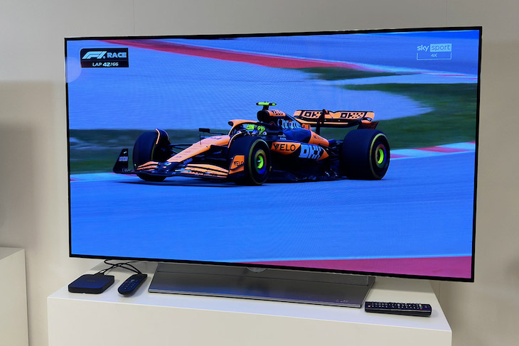 Per quanto riguarda la qualità dell’immagine, ho confrontato i canali Rai e Mediaset in streaming con quelli trasmessi sul digitale terrestre. Per i canali Rai è evidente la maggiore qualità dei primi, meno compressi rispetto alle controparti in DVB-T. Lo si nota ad esempio dai loghi sovrapposti agli sfondi, visibilmente più nitidi e precisi e con una minore presenza di artefatti causati dalla compressione del segnale. Per i canali Mediaset non c’è invece la stessa differenza e la ragione è molto semplice: la qualità delle trasmissioni sul digitale terrestre è mediamente migliore, c'è meno compressione e di conseguenza anche i difetti sono meno visibili. La visione in streaming non offre quindi vantaggi tangibili da questo punto di vista, o almeno non li ho notati durante le prove che ho effettuato, sia presso la sede di Sky, sia poi con più calma in altre occasioni. La qualità dei canali Sky è buona e sostanzialmente in linea con quella delle controparti satellitari. Non ho infatti rilevato alcuna criticità legata all'eccessiva compressione del segnale: non ho visto artefatti o difetti di alcun genere. Da questo punto di vista la differenza rispetto a tanti canali trasmessi sul digitale terrestre è palese: per quelli, come ho scritto sopra, la compressione è spesso visibile e in alcuni casi fastidiosa. La qualità media assicurata dalla piattaforma Sky è dunque visibilmente superiore. Anche il canale Sky Sport 4K, che ho testato soprattutto con la Formula 1, ha una qualità soddisfacente, simile a quella che ho visto più volte su Sky Q via satellite. Ovviamente non ci sono differenze di alcun tipo nel materiale on demand, come ad esempio i film: il catalogo è esattamente lo stesso, sia che si acceda tramite Sky Stream sia che lo si faccia con Sky Q.