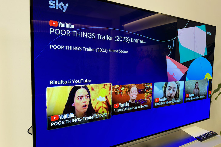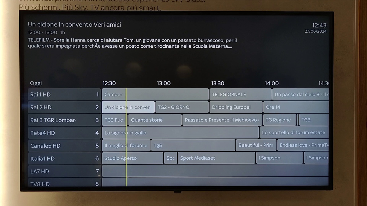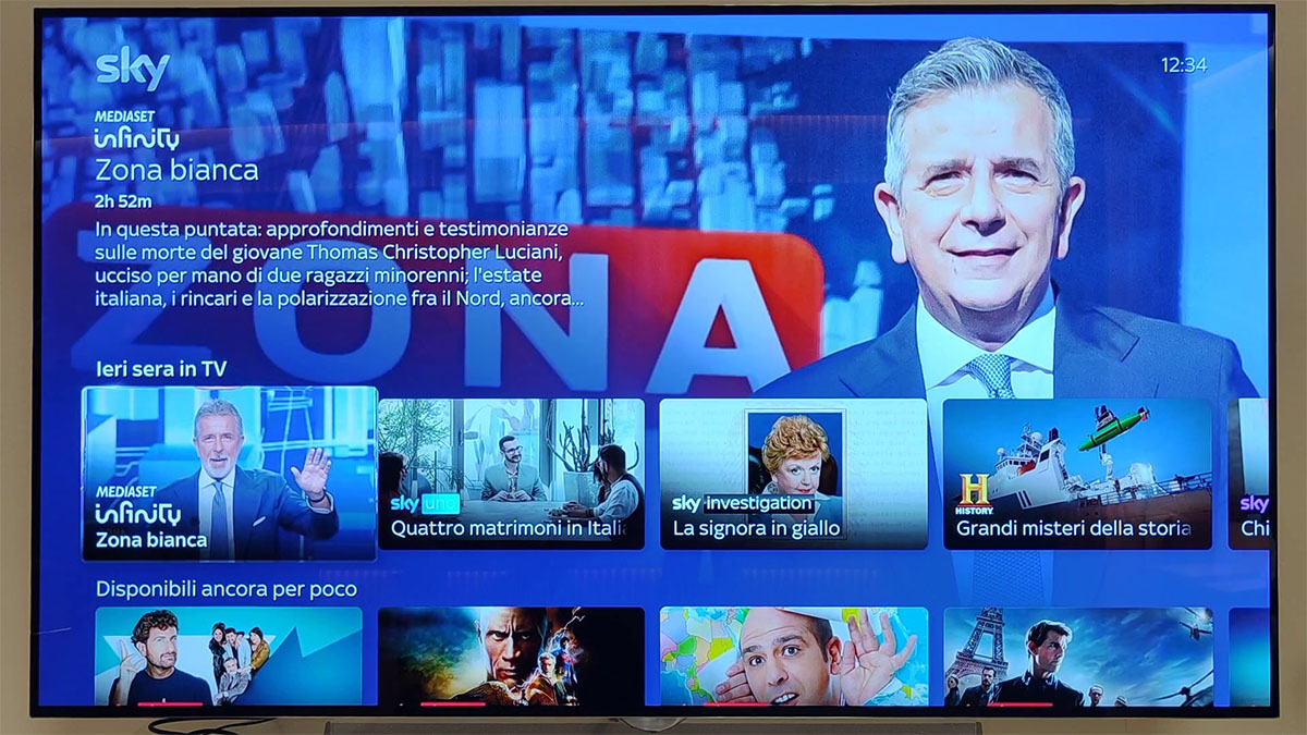 Che cosa si può quindi vedere in concreto con Sky Stream? Il piatto forte è ovviamente costituito dalla pay TV di Sky che viene offerta in versione completa: ci sono tutti i canali disponibili anche via satellite, tutti i servizi tra cui l’interattività, Sky Primafila e anche il 4K. A questa base si aggiungono poi i già citati canali televisivi di editori terzi come Rai, Mediaset e La7. Ci sono poi i programmi presenti solo sul digitale terrestre, ad esempio quelli del gruppo Warner Bros. Discovery e alcune emittenti locali come Telelombardia HD eccetera. Le possibilità offerte dallo streaming aumentano la versatilità di tutti i canali: l’utente può far ripartire dall'inizio qualsiasi programma trasmesso in streaming e intendo proprio qualsiasi. La funzione non è disponibile solo su quelli Sky: si applica anche ai vari Rai 1, Rai 2, Rai 3, Rete 4, Canale 5, Italia 1, La7, Nove eccetera. Non è perciò un problema se si comincia a seguire una trasmissione in ritardo rispetto alla messa in onda: basta cliccare sulla voce “Guarda dall’inizio” che compare in basso a sinistra. Sempre in tema di versatilità citiamo la sezione “Ieri sera in TV”, che fa esattamente quello che il nome suggerisce: propone una selezione con i programmi andati in onda durante la serata del giorno precedente, un modo per recuperare qualcosa di interessante con la massima semplicità. Ai canali TV si aggiungono infine i servizi streaming presenti sulla piattaforma Sky che sono ormai numerosi. Li cito in ordine alfabetico: