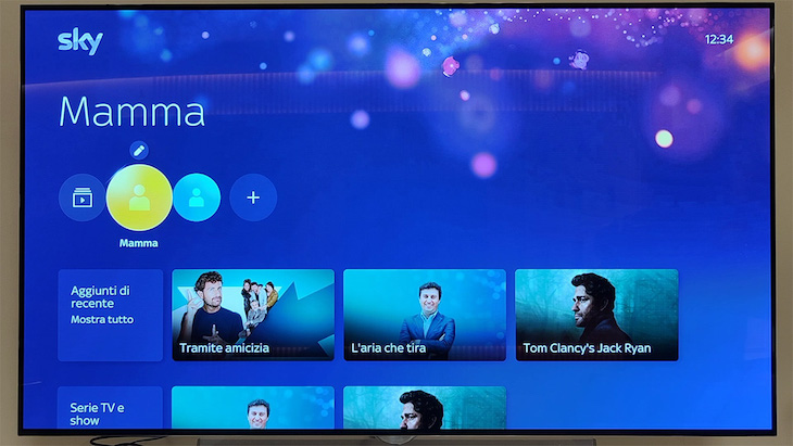L’interfaccia del sistema operativo Sky è studiata per rendere la ricerca dei contenuti la più rapida possibile. Chiunque abbia utilizzato un set-top box o una Smart TV sa benissimo che l’abbondanza di film, serie TV, sport e documentari offre da un lato tantissima varietà ma presenta anche un conto. Trovare qualcosa da guardare può richiedere a volte molto tempo, specialmente quando bisogna districarsi tra più piattaforme e servizi. Per raggiungere l’obiettivo sono state compiute molteplici scelte nello sviluppo dell’interfaccia grafica e nel funzionamento della ricerca. La pagina principale, cioè la home, propone in alto una selezione con i contenuti consigliati in base alle preferenze dell’utente e altri selezionati dalla redazione di Sky. Da notare che non ci sono profili separati per più persone: Sky Stream distingue gli utenti in base alle playlist.
