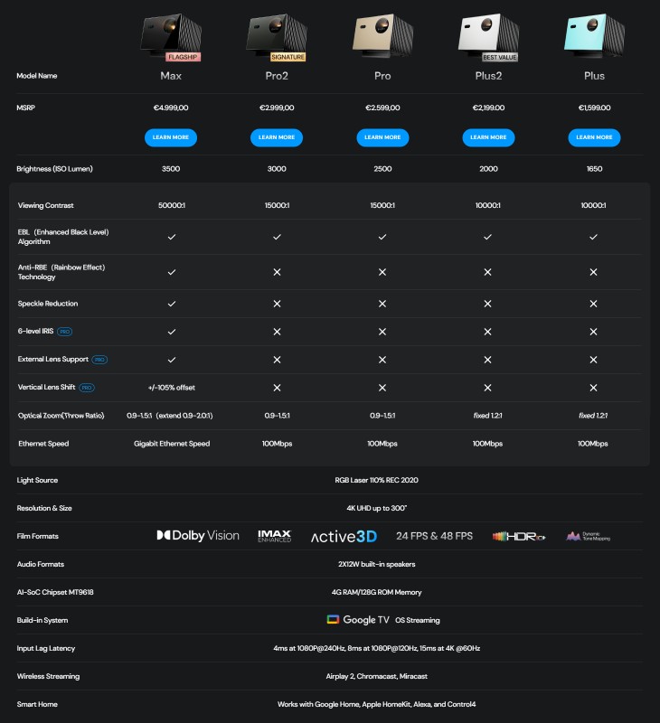 IntroduzioneValerion è un brand creato da Awol Vision, una società fondata nel 2020 e che, nel giro di due anni, dal 2022 al 2024, si è imposta negli Stati Uniti come principale produttore di laser TV. Il cuore degli Awol è un prodotto Hisense OEM, migliorato sia in alcuni componenti che nel software, il tutto per spuntare prestazioni superiori, sia in termini di flusso luminoso che di correttezza cromatica. Trovate il mio test dell'Awol Vision LTV-3500 Pro a questo indirizzo: in effetti il miglior Laser TV mai testato, fino ad oggi. Lo scorso anno invece da Awol Vision è partito il progetto di crowdfuding con il marchio Valerion con ben cinque prodotti, non più Laser TV (a tiro cortissimo) ma tutti basati su "meccanica Hisense" a tiro medio, alias Hisense C1 e C2, con rapporto di tiro fisso pari a 1,2:1 e con zoom 1,6X (rapporto di tiro tra 0,9:1 e 1,5:1). Si tratta del progetto di crowdfunding relativo alla videoproiezione più grande mai registrato e cha raccolto più di 10 milioni di dollari; si partiva da 1.199 USD per il modello base per arrivare a 2.199 USD per il modello top di gamma, il modello "Max" oggetto di questo test. Negli importi erano incluse anche le tasse e dazi doganali ma non la spedizione. Trovate tutto a questo indirizzo. Ho avuto modo di mettere le mani su un esemplare di Valerion VisionMaster Pro 2 nella seconda metà di gennaio, grazie alla disponibilità di un appassionato romano (grazie davvero, Michele) che aveva partecipato al crowdfunding, con il prodotto ricevuto il 21 gennaio scorso; in quell'occasione ho verificato le stesse prestazioni di un Hisense C2 Ultra ma con un tone mapping più efficace, qualità d'immagine generalmente superiore, con ottica leggermente migliore anche rispetto a quella montata dal piccolo Leica e soprattutto tanta, tanta silenziosità. Nessuna differenza invece in termini di rapporto di contrasto e flusso luminoso con Hisense C2 Ultra. Tornerò su questi aspetti più avanti. Veniamo infine al Valerion VisionMaster Max, un progetto che ha raccolto la maggior parte degli ordini e che è addirittura migliorato nel tempo: le 3.000 persone che hanno pagato 2.199 USD, avevano puntato su un prodotto con alcune caratteristiche già ottime. Qualche tempo fa Valerion - che ha già realizzato e spedito gli altri tre proiettori - per il Max ha cambiato le carte in tavola, ha posticipato le consegne di parecchi mesi ma ha migliorato in maniera drammatica le caratteristiche e la qualità del prodotto, ora con prezzo più che raddoppiato. Tutti quelli che hanno scommesso sul crowdfunding, riceveranno il prodotto aggiornato, leggermente più luminoso (e per sfruttare l'iris è un vantaggio mica da ridere), dal valore più che doppio rispetto a quello che hanno pagato.