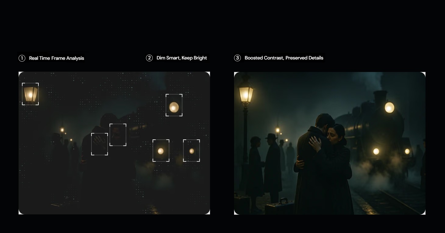 Sono tre le possibilità per aumentare il rapporto di contrasto: attivare il famigerato EBL (dimming del flusso luminoso e conseguente modulazione dinamica del gamma), oppure il diaframma automatico oppure ancora combinare questi due sistemi. Il sistema di EBL funziona dannatamente bene e dona una profondità alle immagini che in alcuni casi supera anche la tridimensionalità di un proiettore come l'Epson LS12000 che parte da un rapporto di contrasto nativo più che doppio rispetto al Valerion. Il problema dell'EBL di Valerion è la velocità; passando da scene chiare a scene scure non ci sono problemi, il flusso luminoso si abbassa con la velocità giusta e la modulazione del gamma è davvero ben fatta, in modo da restituire un'ottima tridimensionalità e visibilità dei particolari sulle basse luci. Il passaggio alle scene più luminose è invece ancora troppo lento e il rischio di schiacciare troppi particolari sulle alte luci è sempre in agguato. Non succede sempre ma quando accade per me è insopportabile. Così insopportabile da scegliere di disattivarlo. Il sistema dovrebbe migliorare anche perché quello di Epson, tanto per citarne uno che è sulla breccia da molto più tempo, è molto più veloce. Sono in attesa di aggiornamenti e completerò il test di questo proiettore tra qualche settimana, non appena saranno disponibili i primi modelli di proiezione, si spera con un firmware che corregga alcuni limiti che ho segnalato con precisione a "chi di dovere". Con il sistema EBL "rimandato a ottobre" ho attivato il diaframma automatico, un sistema che a me non è mai piaciuto per un semplice motivo: con le immagini molto luminose il flusso luminoso rischia di essere troppo elevato e vice-versa troppo contenuto con le scene più scure. L'iris dinamico del Valerion invece non è niente male anche se manca la possibilità di selezionare i limiti entro i quali modulare l'apertura, un po' come accadeva tempo fa in alcuni proiettori Sony. In ogni modo il sistema è un buon palliativo per avere scene scure più digeribili e senza il "pompaggio" sulle alte luci che accade con EBL attivato. Attenderò una versione di firmware più aggiornata per verificare anche la combinazione di iris ed EBL. Con la consapevolezza di dover attendere un firmware con EBL più efficace, ho dedicato sicuramente meno tempo del previsto alla visione di materiale con gamma dinamica estesa, privilegiando i "classici" come Oblivion, Lucy, Sicario, 007, Aquaman, The Meg, alcuni contenuti in streaming di qualità da Apple TV+ come Ted Lasso e Fondazione, con l'inclusione di alcune novità di animazione come Trolls 2 da Netflix - nonostante l'anacronistico bitrate - per sfruttare a dovere l'estensione del gamut ai confini del REC BT.2020, soprattutto sul vertice della componente verde. Il prodotto è sicuramente valido e il Tone mapping generale ha sicuramente una marcia in più rispetto al prodotto Hisense da cui deriva, soprattutto per quanto riguarda tutto quello che c'è nelle basse luci. Sulle alte luci invece c'è qualcosa da migliorare. Per quanto riguarda EBL e diaframma automatico valgono esattamente le stesse considerazioni già espresse nella visione di materiale con gamma dinamica compressa. In particolare l'EBL ha notevoli potenzialità anche se il "miracolo" è ancora a distanza siderale: un veloce confronto con il JVC DLA-NP5 entrambi (JVC e Valerion) tarati al meglio delle mie possibilità e uniformando alla perfezione il flusso luminoso, non lascia spazio a interpretazioni: quelli che online hanno dichiarato che preferiscono il Valerion al JVC andrebbero lasciati in ginocchio sui ceci per settimane, davanti ad una comparativa seria. Quello che mi ha sorpreso di più è l'ottimo lavoro di Valerion sui colori, precisi e mai fuori posto, anche negli incarnati e nelle tinte più critiche. Solo a bassa luminanza la saturazione sfugge di mano ma in quel caso la colpa è del rapporto di contrasto che non regge il passo. Molto buona anche la ricchezza di sfumature: non sono riuscito a cogliere in fallo il Valerion neanche con le trappole migliori e problemi di colori bending (chiamatele solarizzazioni o come vi pare) non le ho rilevate.
