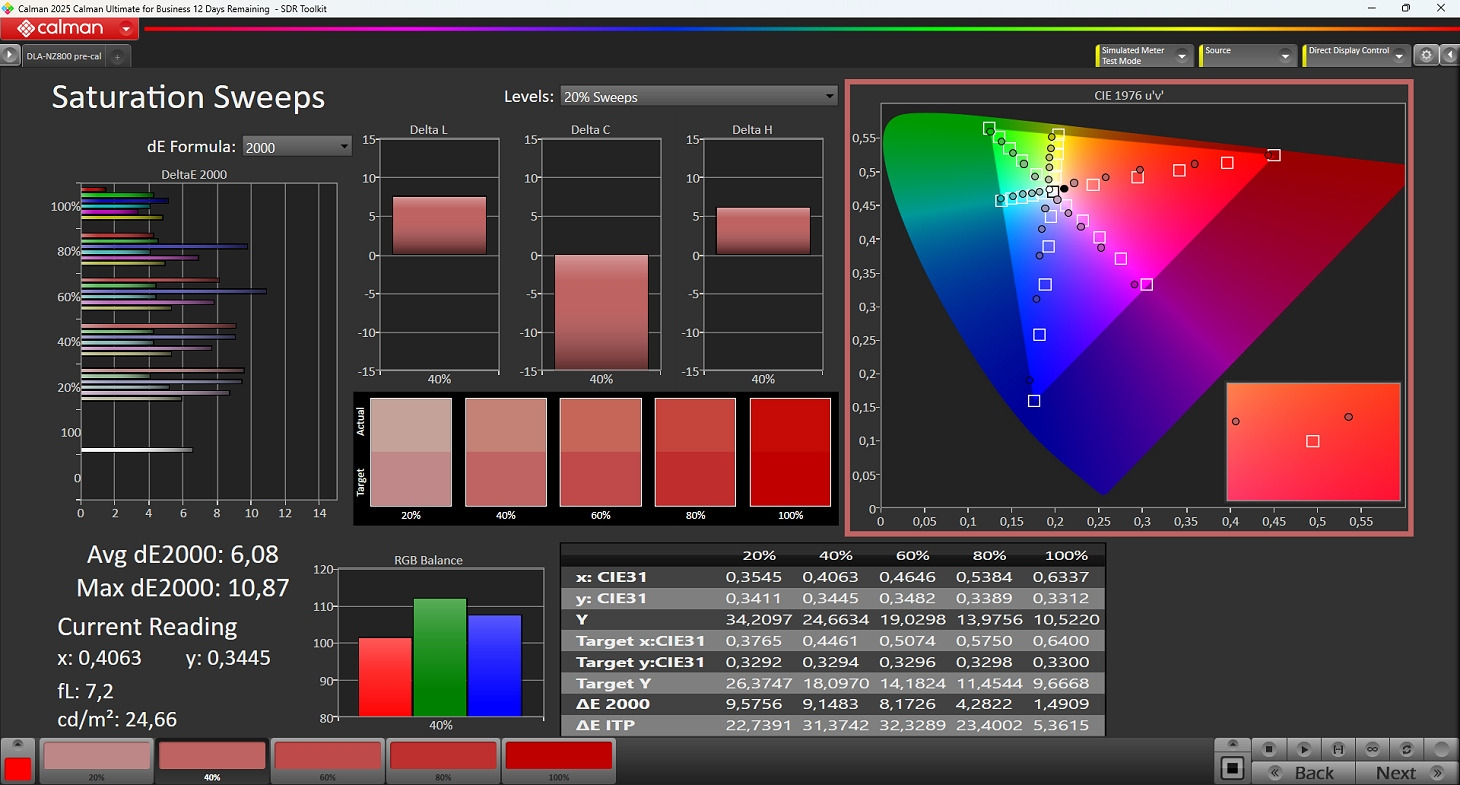 Durante la calibrazione semi-automatica vengono misurati i livelli di luminanza delle tre componenti RGB a vari step (20 oppure 33) in modo da analizzare la linearità delle tre matrici D-ILA. Una volta misurati tutti i valori, il software crea un file con le 1D-LUT di correzione per le tre matrici che vengono poi caricate nella macchina. Il processo è semplice ma servono alcune accortezze.