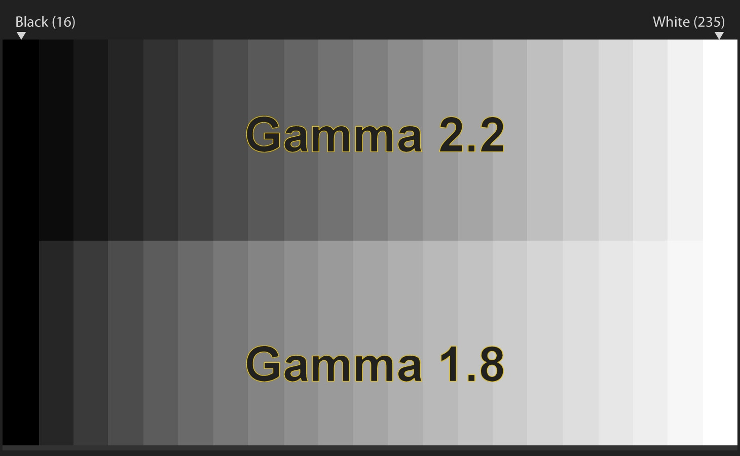 La differenza dei valori del gamma altera la proporzione tra i vari livelli di luminosità. Gamma più elevato equivale a differenze più alte tra i vari livelli, con i primi step che sono più scuri. Al contrario con un gamma più basso, ci sono salti minori con le basse luci più luminose e una generale sensazione di "compressione" della gamma dinamica.