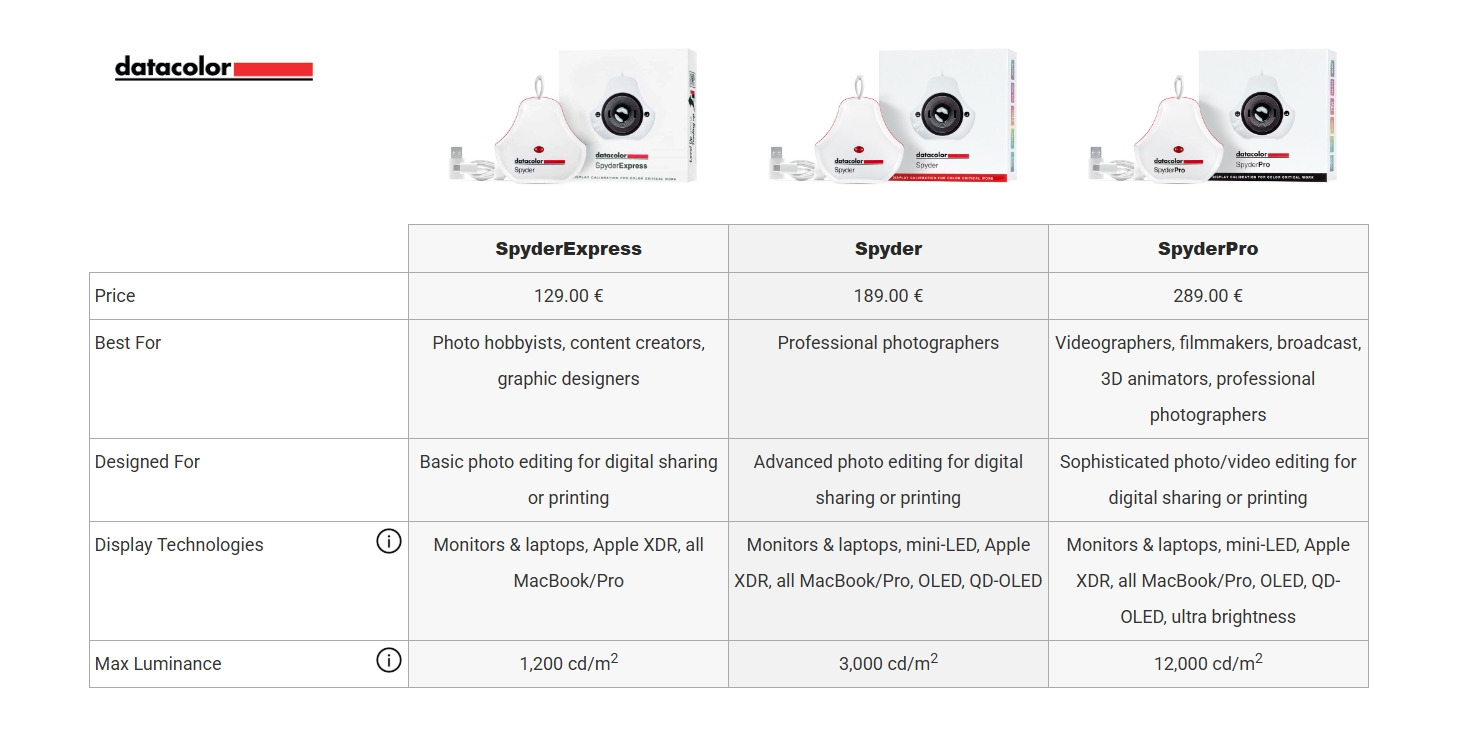 Spyder X e Spyder X2 sono ormai fuori produzione quindi il consiglio è l'acquisto di uno dei tre nuovi Spyder introdotti nel 2025. Ai fini della calibrazione con i proiettori JVC dovrebbe andare benissimo anche lo SpyderExpress, quello più economico, anche se al momento è disponibile quasi esclusivamente sul sito del produttore. Il modello intermedio e quello top sono disponibili su amazon.