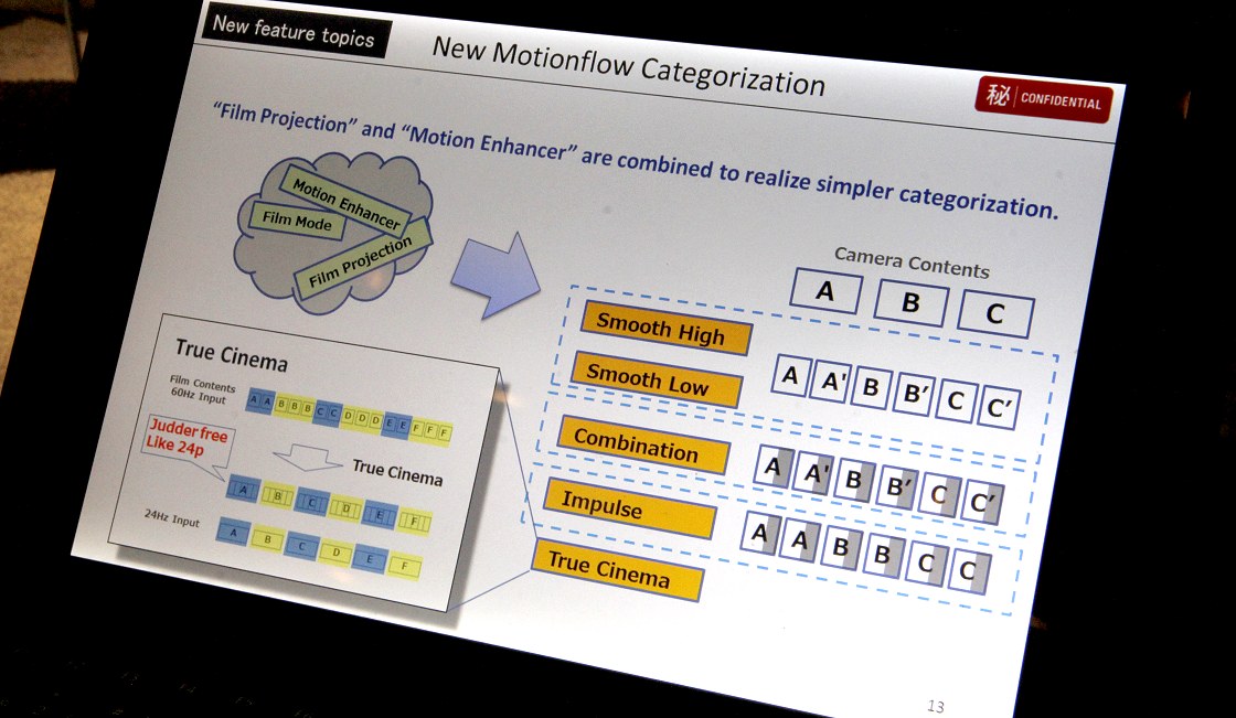 Qui a Berlino ho avuto modo di osservare il VW500 in una saletta dedicata e perfettamente oscurata, con schermo da circa 3 metri di base e connesso con le sorgenti più disparate: dal classico lettore Blu-ray Disc (rigorosamente Sony!) che riproduceva alcuni del contenuti "Mastered in 4K" (ne riparleremo presto), ad un server che riproduceva materiale non compresso in formato DPX, di qualità - ovviamente - molto elevata. Vi parlerò delle mie prime impressioni nel paragrafo successivo. Ora vorrei approfondire i contenuti della nuova macchina e tutte le principali differenze con l'ammiraglia VW1000ES, illustrati personalmente da Tak Nakane, product e marketing manager Sony per i videoproiettori.