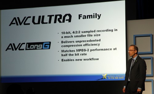 La seconda parte è stata più interessante, con una carrellata dei nuovi prodotti già annunciati all'IBC dello scorso settembre, aggiornamenti per altri prodotti e soluzioni e novità vere e proprie. Tra le cose più interessanti che abbiamo ascoltato c'è un ampliamento della linea di monitor e la nuova famiglia di codec AVC ULTRA che permettono di arrivare fino a 12 bit per componente, senza compressione colore (ovvero 4:4:4), 400 Mbit/sec e possibilità di registrare flussi video fino a risoluzione 4K.