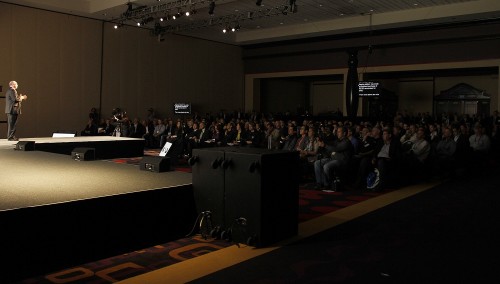 Domenica mattina: 15 Aprile 2012, ore 12:30. Il primo appuntamento della giornata è con la conferenza stampa di Panasonic, in programma all'interno di una delle più grandi sale da ballo dell'Hotel Planet Hollywood. Al contrario di Canon e Sony, che hanno annunciato i nuovi prodotti prima dell'inizio della fiera, da Panasonic non è filtrata nessuna notizia prima del NAB Show.