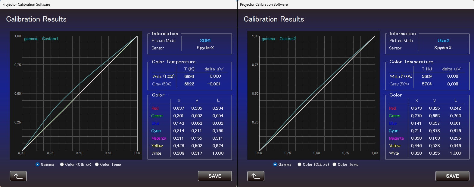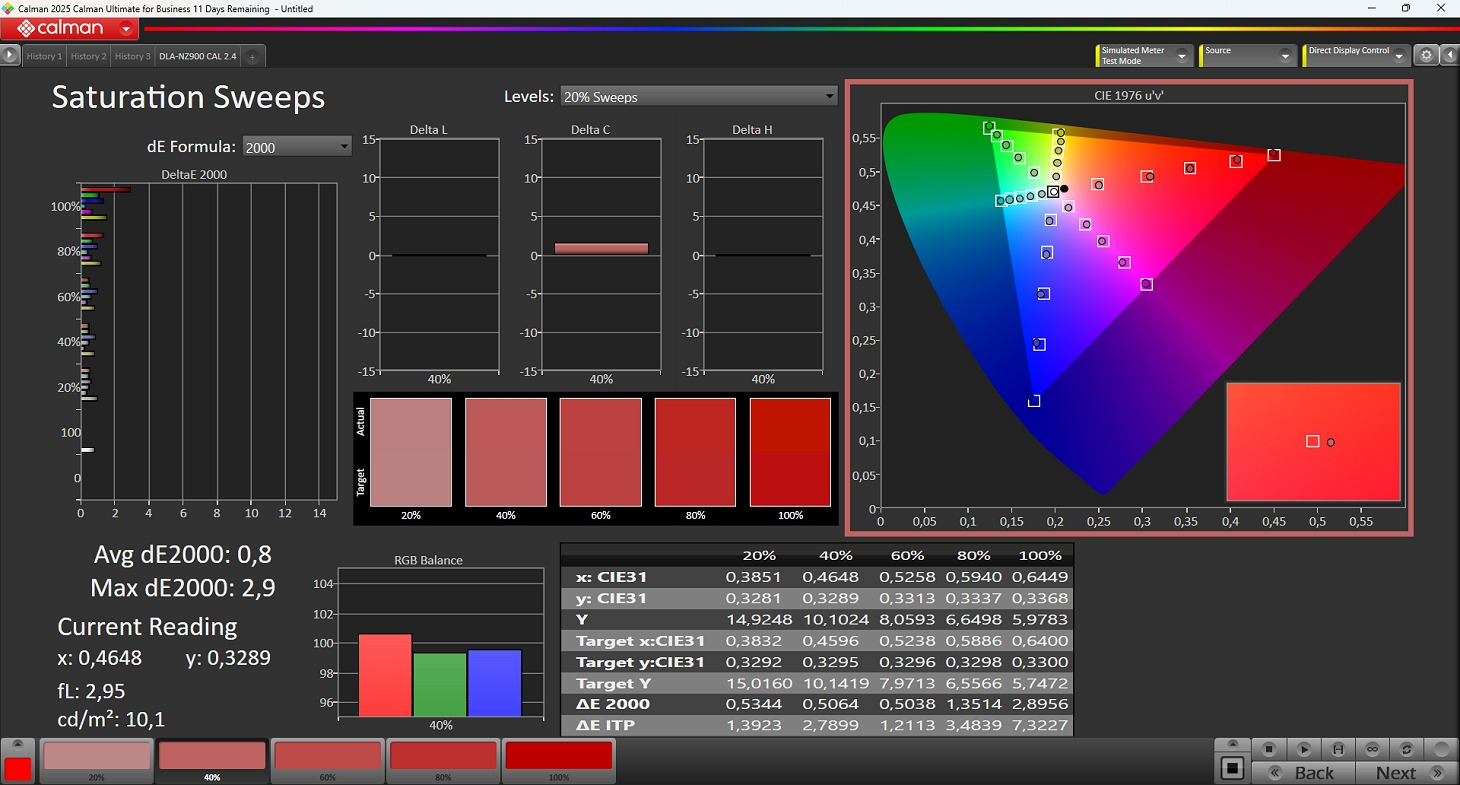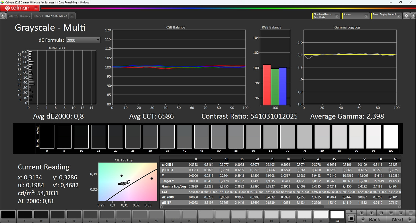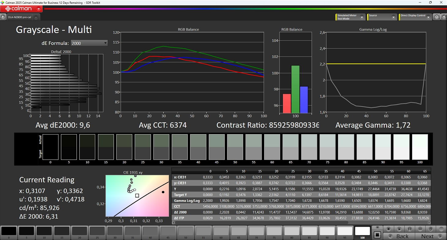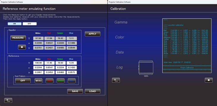 Durante la calibrazione semi-automatica vengono misurati i livelli di luminanza delle tre componenti RGB a vari step (20 oppure 33) in modo da analizzare la linearità delle tre matrici D-ILA. Una volta misurati tutti i valori, il software crea un file con le 1D-LUT di correzione per le tre matrici che vengono poi caricate nella macchina. Il processo è semplice ma servono alcune accortezze.