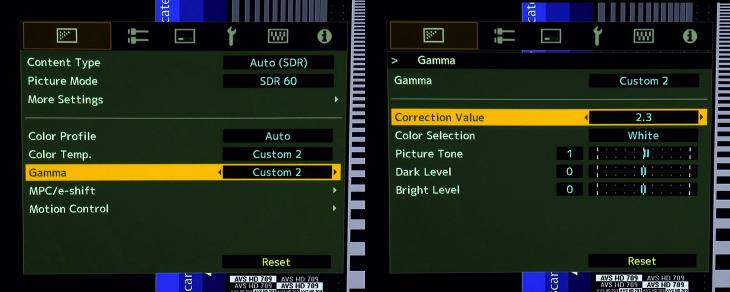 Questo limite dei valori del gamma troppo bassi per segnali video SDR (con gamma dinamica standard), si ripropone anche nella riproduzione dei contenuti HDR: anche con segnali video HDR10, HLG e HDR10+, c'è sempre il solito problema: una sensazione di dinamica più compressa e profondità che potrebbe essere decisamente superiore. Un confronto diretto tra un proiettore appena tirato fuori dalla scatola e uno opportunamente calibrato è imbarazzante.