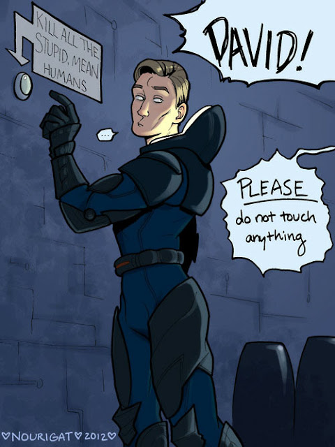 Solo, anche a chi è piaciuto, chiederei, se possibile, umilmente e con il cuore sanguinante...non mi portate paragoni con Alien, ditemi tutto che mi va BENISSIMO ma lasciate stare Alien, per affetto verso una sconosciuta, anche se non siete d'accordo con me assecondatemi come si fa coi matti, ve ne prego. Ogni volta è un dolore lacerante. Per questo, più di tutto, se incontrassi Scott gliele darei.