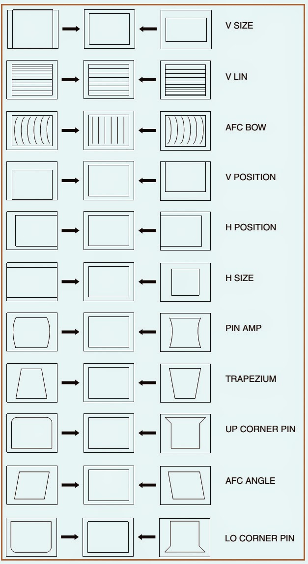 I mivar hanno tutte le regolazioni interne gia perfettamente regolate (almeno nel mio caso...) in fabbrica, nel menu quindi non avrai opzioni come vertical bow, V lin, VS slope, ecc... ma solo trapezio e parabola/effetto cuscino, da regolare in caso di bisogno, una volta per sempre... e ovviamente posizione e ampiezza sia verticali che orizzontali, in modo da avere sempre lo schermo perfettamente centrato con tutte le console/fonti diverse... Il menu di servizio dei tv mivar è più semplice da utilizzare dei normali menu degli altri tv ed è praticamente impossibile fare danni, di gran lunga il miglior sistema che abbia mai visto...