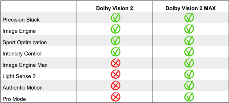 Dolby sta proseguendo lo sviluppo del nuovo formato: le specifiche definitive non sono ancora state finalizzate. I lavori si concluderanno nel corso dei prossimi mesi ed è per questo motivo che il supporto annunciato finora è sempre vincolato al rilascio di aggiornamenti firmware, necessari per attivare effettivamente Dolby Vision 2.