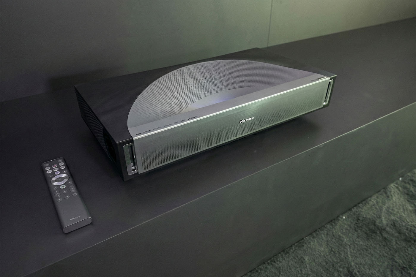 Il PX4-Pro adotta un design praticamente identico a quello di L9Q, il Laser TV che si colloca al vertice della gamma Hisense con i suoi 5.000 ANSI lumen. Il nuovo modello appartiene però alla famiglia Laser Cinema e si distingue per dimensioni più compatte e per la finitura nero/argento, che sostiuisce la nero/oro di L9Q.