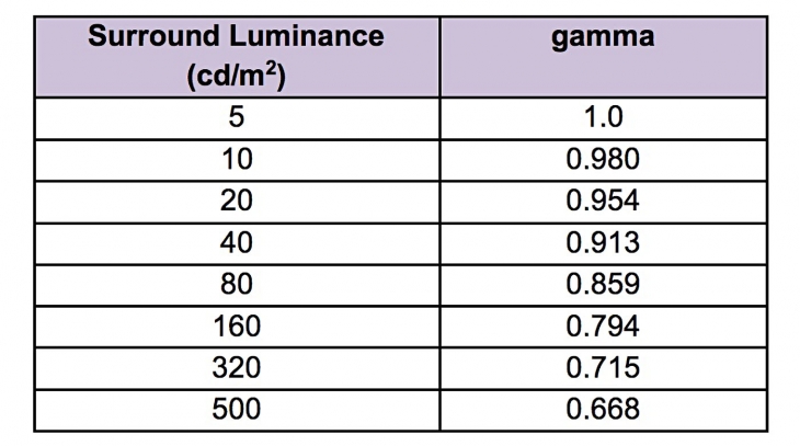- L'algoritmo non dovrebbe applicare alcuna elaborazione con una luminanza ambientale inferiore a 5 nit.