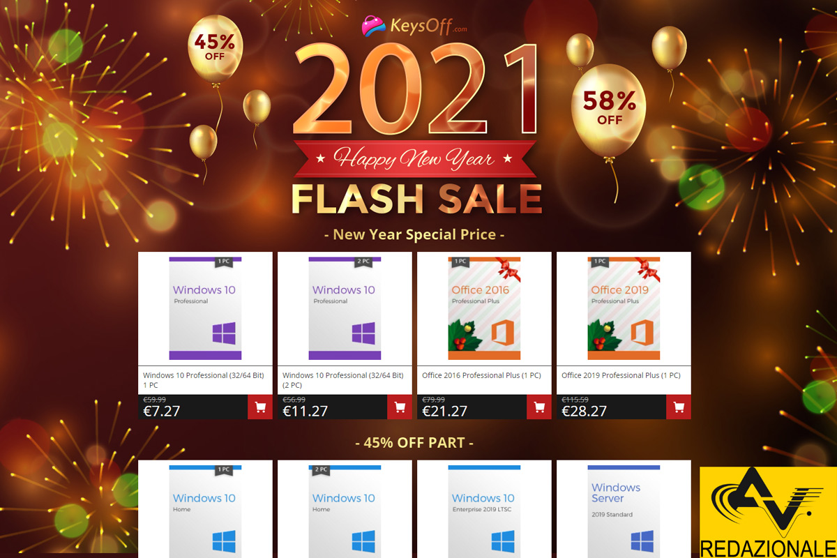 In occasione dell'avvento del 2021 Keysoff.com propone le sue offerte per il nuovo anno, con la possibilità di ottenere uno sconto fino al 90% sui prodotti Microsoft come Windows e Office.