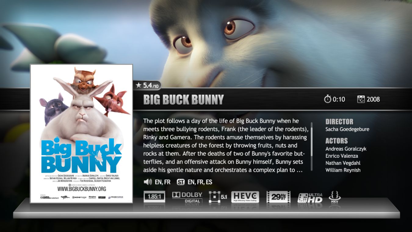 Come nei predecessori vengono supportati la maggior parte dei codec, formati e file contenitori, inclusi HEVC, VP9, H.264, ISO DVD/Blu-ray 2D/3D con supporto BD-lite. L'interfaccia è stata arricchita con funzioni come i trailer dei titoli memorizzati, la gestione automatica della riproduzione e il parental control. Viene offerta anche la possibilità di variare la profondità dei segnali 3D e la gestione dei sottotitoli, così come il supporto ai frame rate 23,976 anche in 4K e 59,94 Hz.