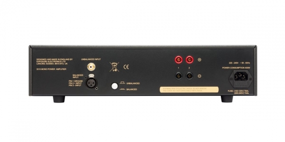 L'alimentazione garantisce un'elevata riserva di corrente in uscita e l'attenuazione del rumore nello stadio di guadagno, grazie al trasformatore toroidale sovradimensionato. Il circuito è accoppiato in DC e impiega transistor bipolari accuratamente selezionati. L'apparecchio dispone di protezione termica e da sovraccarico. Gli ingressi sono disponibili su terminali sbilanciati e bilanciati XLR, selezionabili tramite un pulsante sul retro. I morsetti altoparlanti sono isolati e sdoppiati per l'uso in bi-amplificazione.