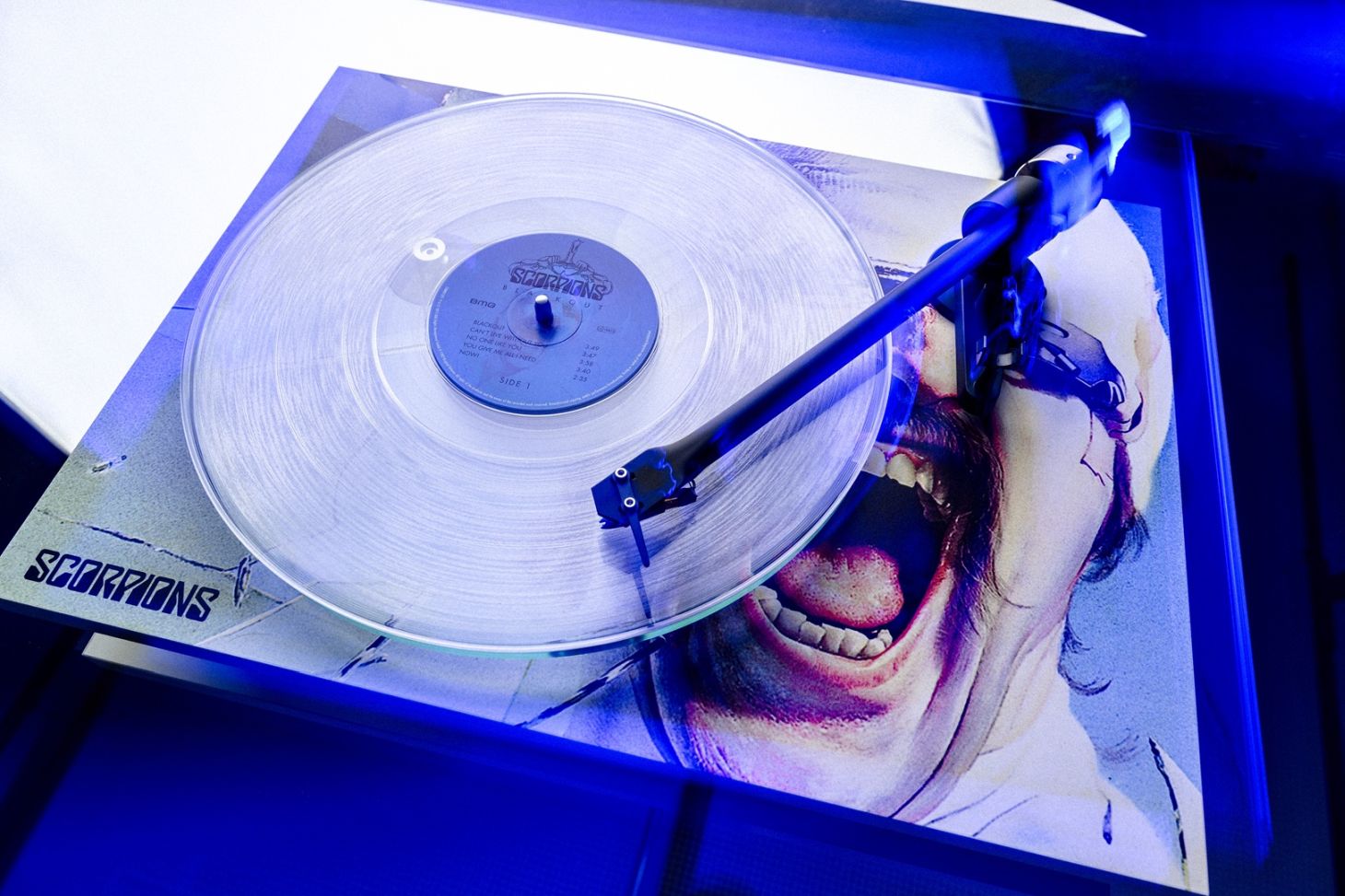 Pro-Ject ha annunciato il giradischi Scorpions Turntable, ennesima edizione limitata della Artist Collection. La grafica riproduce la copertina dell'album Blackout del 1982, uno dei più famosi della rock band tedesca. Tecnicamente invece si tratta di una versione del modello T2, da cui deriva anche l'Elvis Turntable. Troviamo quindi un piatto in vetro dall'elevata massa (1,7 kg) e spessore (10 mm) per eliminare totalmente le risonanze. Il cuscinetto, costruito con asse in acciaio temprato e boccola in ottone, vanta una tolleranza di appena 0,001 mm Viene azionato tramite una cinghia collegata a un sottopiatto in composito ABS rinforzato con fibra di vetro. Il braccio diritto da 9 pollici (lunghezza effettiva 230 mm) è realizzato in alluminio monoblocco con portatestina fuso nella canna.