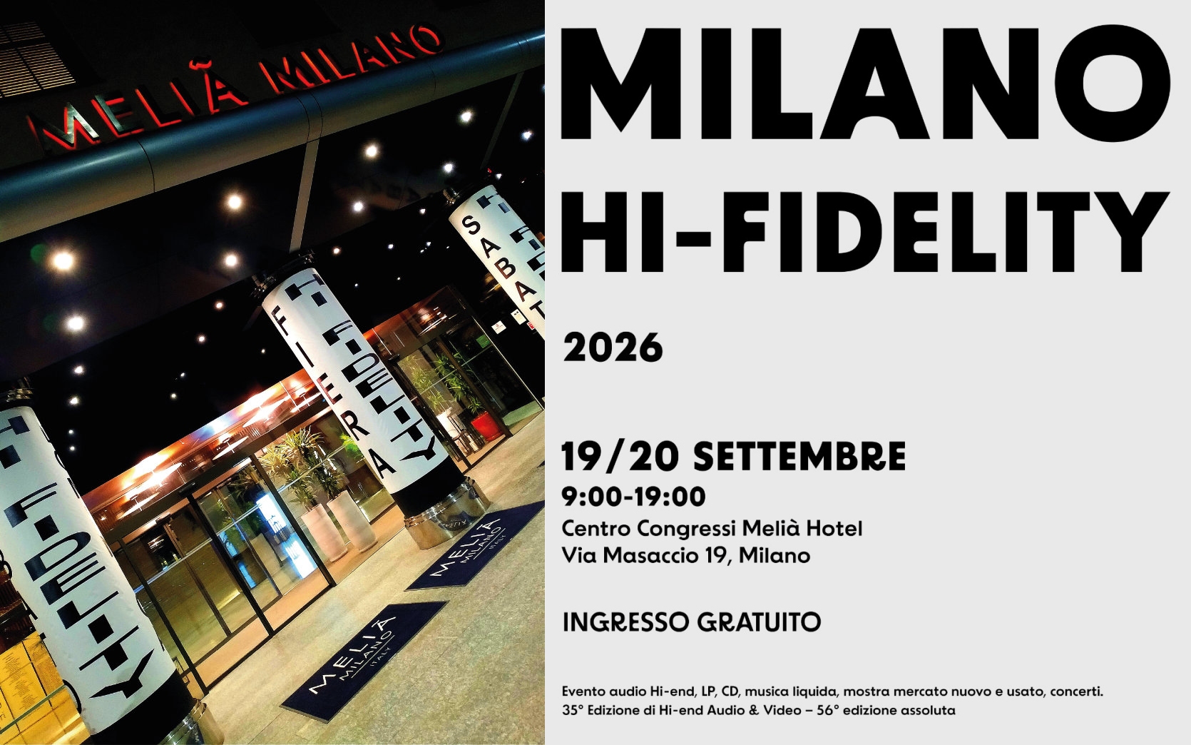 Il Milano Hi-Fidelity, l'evento di riferimento per gli appassionati di alta fedeltà, all'interno dello splendido hotel Melià di Milano, è stato anticipato al weekend del 19 e 20 settembre