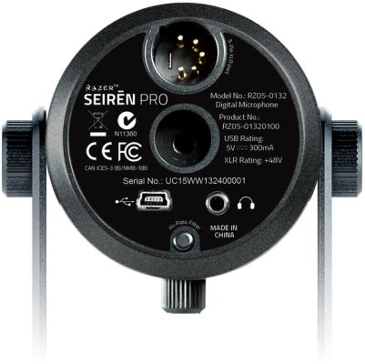 Razer Seirēn Pro offre inoltre agli streamer la possibilità di registrare tramite connessione analogica bilanciata XLR o USB digitale. Il cavo XLR consente di collegare il microfono direttamente a telecamere o console di mixaggio, permettendo agli utenti di connettere molteplici strumenti alla console e beneficiare di maggiore flessibilità in caso di regolazioni al volo durante le sessioni live.