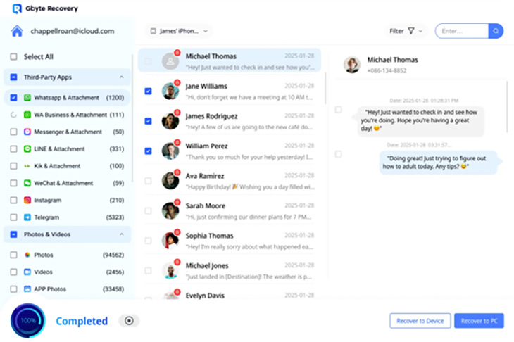 Uno dei suoi punti di forza è la presenza di tre diverse modalità di recupero. È possibile tentare il recupero direttamente dal dispositivo iOS collegato al computer oppure analizzare i backup presenti su iTunes o iCloud, una soluzione utile quando il telefono non è più accessibile o quando i dati sono stati eliminati da tempo.
