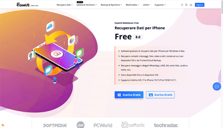 EaseUS MobiSaver è un altro dei software più conosciuti nel settore del recupero dati per dispositivi iOS. Si tratta di uno strumento pensato principalmente per l'utilizzo da computer ed è disponibile sia per Windows che per macOS.