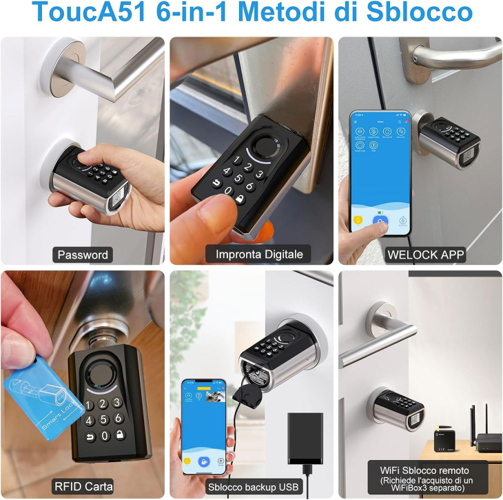Le smart lock WELOCK arrivano in due varianti pensate per esigenze diverse: Touch41, orientata alla semplicità biometrica, e Touca51, più flessibile per famiglie e gestione remota. L’integrazione con la Wifibox3 aggiunge controllo da app e compatibilità con Alexa/Home Assistant. Installazione semplice su cilindro europeo, spedizione dall’UE e due anni di garanzia.