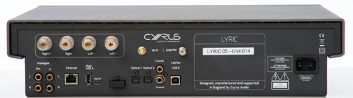 Per offrire una qualità ottimale sono stati utilizzati nuovi amplificatori di potenza ibridi (gli stessi che dovrebbero equipaggiare il futuro Cyrus Stereo 200), con un amplificatore in Classe A per l'uscita cuffie, realizzato con una sezione di alimentazione ad elevata capacità. L'impedenza dei diffusori viene rilevata automaticamente, grazie ad un sistema proprietario, che provvede ad adattare l'uscita di conseguenza. La quantità di funzioni fornite dai Lyric è notevole: oltre allo streaming tramite protocollo UPnP, troviamo la radio FM, DAB e tramite web, la lettura di file da USB, la connettività Bluetooth con A2DP e aptX ed un lettore CD integrato. Il lettore in questione impiega il sistema SE CD, utilizzato sulla meccanica di trasporto CD T. Completamente nuovo è anche il display sul frontale, dotato di un sensore di prossimità per rilevare l'eventuale presenza di persone nella stanza e attivare o meno la retro-illuminazione. La scocca è interamente in alluminio rifinito a mano.