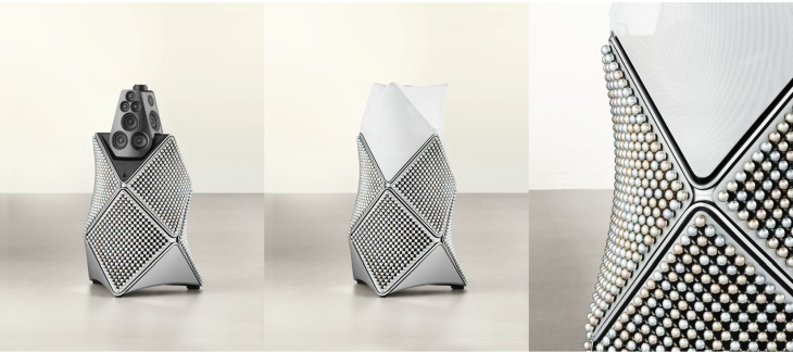 I Beolab 90 Zenith Edition sono descritti invece come uno studio sulla precisione della texture e l'eleganza scultorea, che attinge a piene mani dalla maestria Atelier dell'azienda. Le migliaia di sfere in alluminio e i sottili inserti in madreperla trasformano i suoi diffusori di punta in una presenza luminosa e tattile. Suiognuno dei sei pannelli sono disposte 289 sfere in alluminio anodizzato di sette diversi colori, ispirati alle perle, creando una superficie riflettente e scintillante che interagisce con la luce e l'ambiente. La mascherina in alluminio lavorato a macchina è sabbiata con un effetto perla e anodizzata in grigio scuro, in modo da assomigliare a un guscio d'ostrica. La Zenith Edition gioca con i riflessi e le texture in modo sottile, quasi vivo. Le superfici formate da più strati e l'interazione di finiture lucide e opache catturano la luce in modo diverso durante la giornata, creando una presenza visiva dinamica che completa la maestria acustica al suo interno.