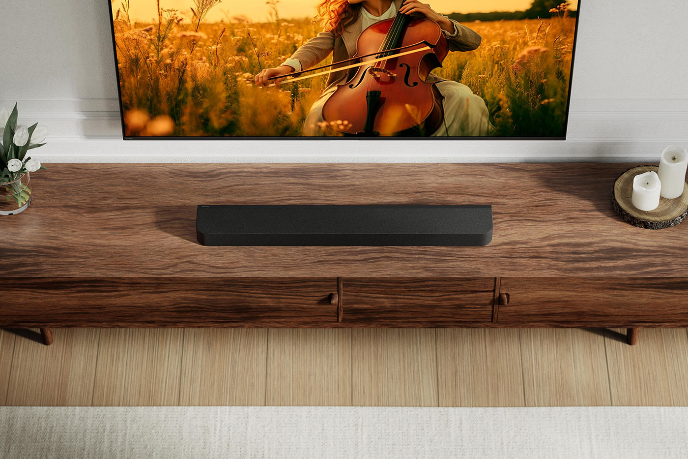 La prima delle nuove soundbar è un modello dotato di 3.1 canali con subwoofer esterno wireless. Il corpo centrale misura 900 x 64 x 100 (L x A x P) millimetri mentre il subwoofer è 192 x 388 x 400 millimetri. La soundbar ospita tre trasduttori da 45 x 82 millimetri per canale destro, sinistro e centrale. Il subwoofer si affida invece a un cono da 160 millimetri e dispone di un accordo bass reflex.