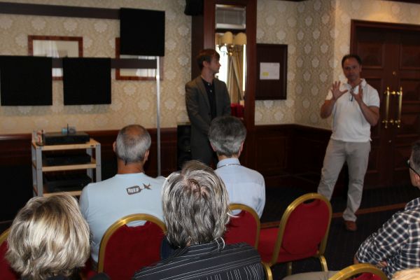 La sala allestita da Marantz Italy ha ospitato Dan Poulton di Cambridge Audio e Alberto Sabbatini di Astri. Il primo ha dimostrato le peculiarità dei nuovi trasduttori BMR progettati per i diffusori Aeromax 2 e Aeromax 6 e le nuove possibilità dello Stream Magic 6 V2 (ora utilizzabile con Spotify Connect) collegato al finale di potenza 651W. Alberto Sabbatini ha invece interpretato la sala d'ascolto come protagonista del sistema audio dimostrando come attraverso l'utilizzo di pannelli posizionati in modo corretto si possano ottenere importanti miglioramenti anche su sistemi audio di prezzo contenuto come quello proposto da Cambridge Audio.
