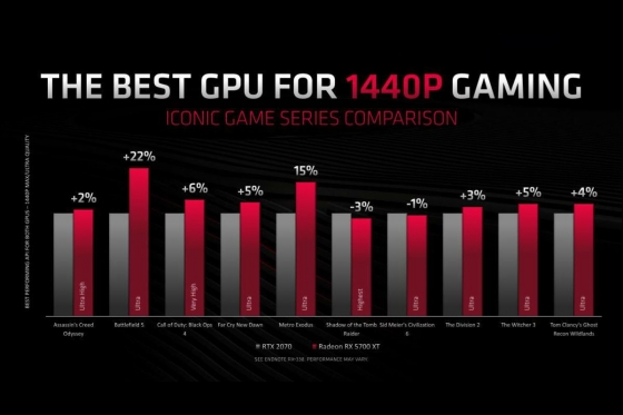 AMD ha mostrato anche dei test a confronto con le le dirette concorrenti Nvidia RTX 2070 e RTX 2060. La RX 5700 XT ha superato di circa il 10% le prestazioni della RTX 2070, mentre la RX 5700 ha prevalso sulla RTX 2060 di circa il 10-15%, anche se naturalmente l'attendibilità dei test resta da verificare. Da sottolineare come le nuove schede AMD non supportino il ray-tracing a livello hardware, come avviene invece con le Nvidia RTX. Questo aspetto cambierà però con l'architettura RDNA 2, attesa tra la fine del 2020 e l'inizio del 2021, lo stesso periodo in cui arriveranno PS5 e Xbox Scarlett, basate anch'esse su GPU Navi.