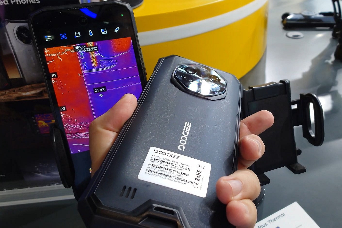 Il modello più avanzato tra quelli mostrati allo stand è il Doogee S300 Plus Thermal, uno smartphone rugged che combina una piattaforma hardware di fascia alta con sensori fotografici avanzati e imaging termico. Il dispositivo utilizza un display IPS da 6,78 pollici con risoluzione Full HD+ e refresh rate fino a 120 Hz, soluzione che garantisce una buona fluidità nell’utilizzo quotidiano e nelle applicazioni professionali.